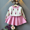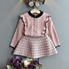 FREE SHIPPING Baby Girls Winter Clothes Set Christmas Outfits Kids Girls Plaid Knit Sweater And Fall Skirt JKP6105