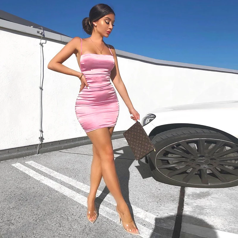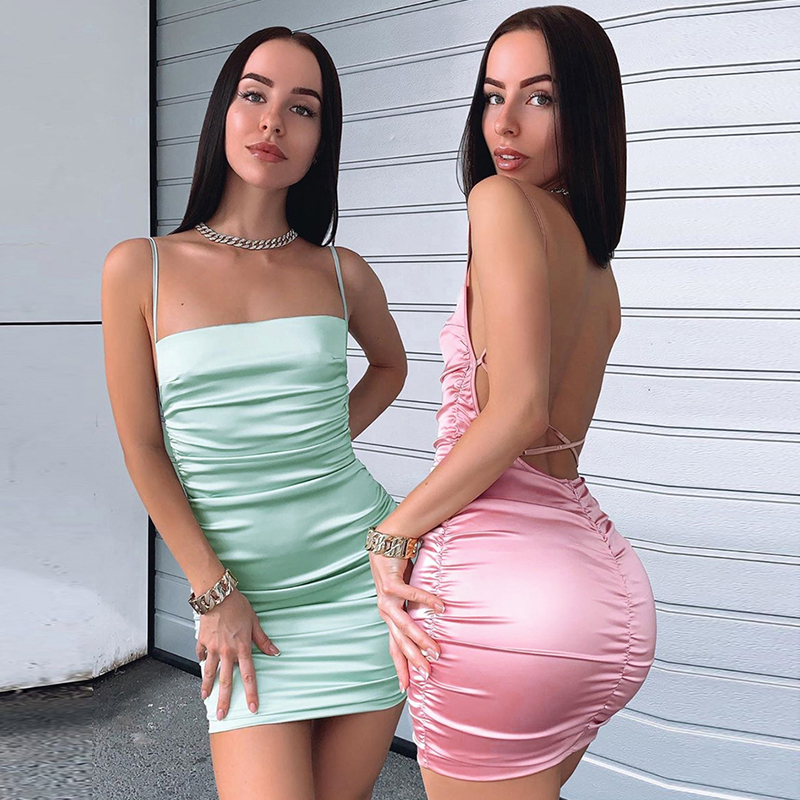 FREE SHIPPING Backless Satin Dress Spaghetti Straps JKP4667