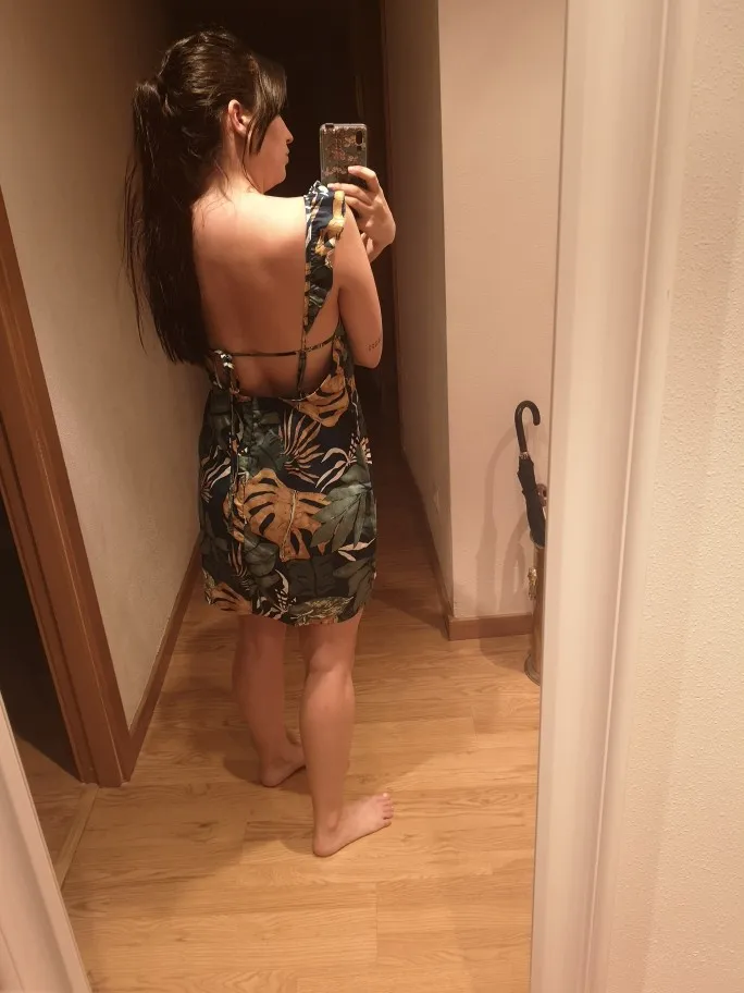 Beautiful dress. Just like the pictures they show, both in color and shape. I got the size l but the m would have adapted better to me. Fast shipping, i received it in 10 days. It's not elastic fabric, and it's a little tube-shaped the bottom. The braces are adjustable and have second lining on the chest part. I recommend it.