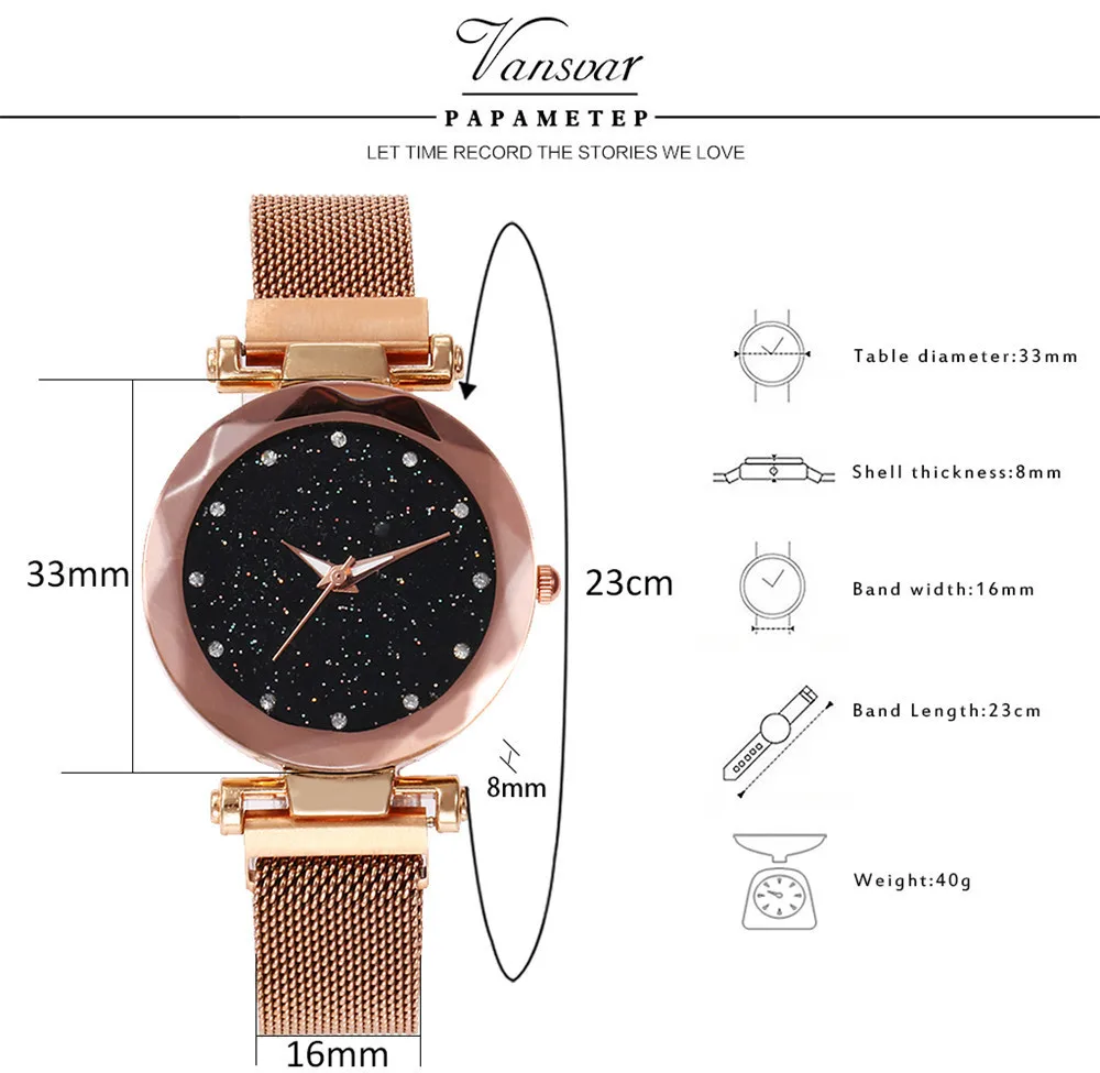 Wonderful watch on the magnetic clasp. Suitable for any hand .. Work). Delivery is fast. I'm happy