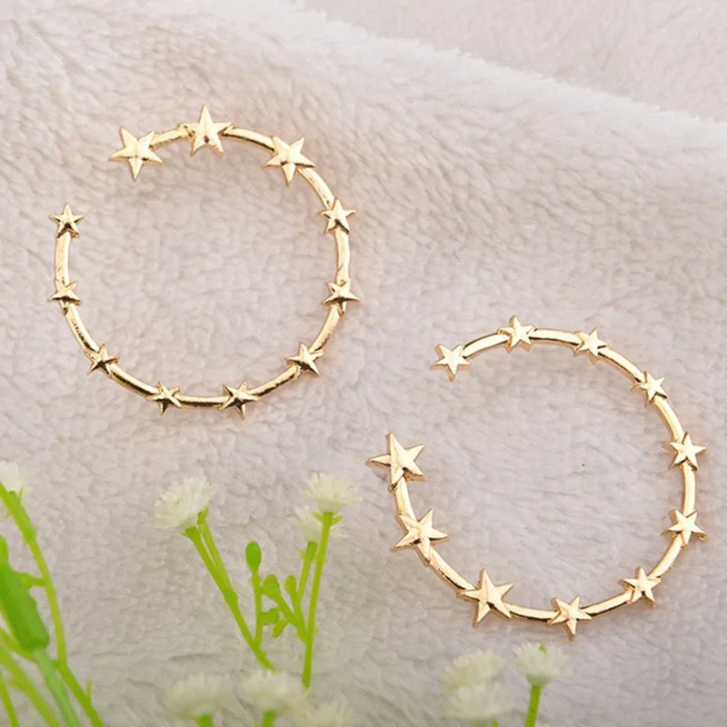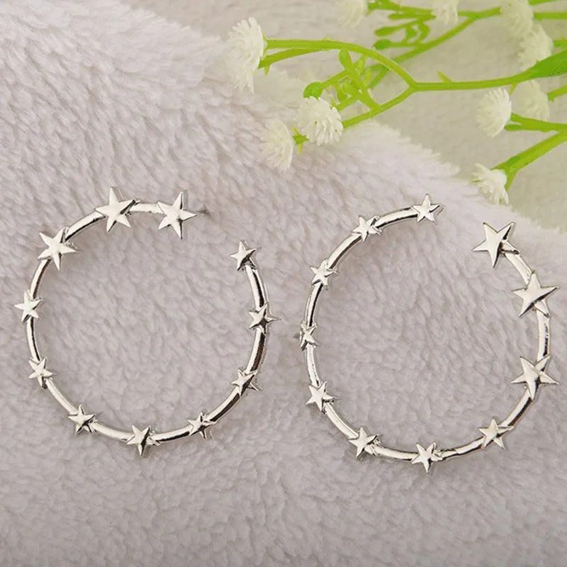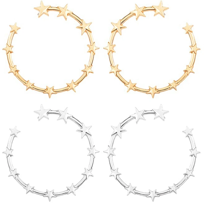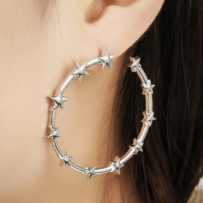 FREE SHIPPING Big Circle Five-pointed Star Earrings JKP772![]()