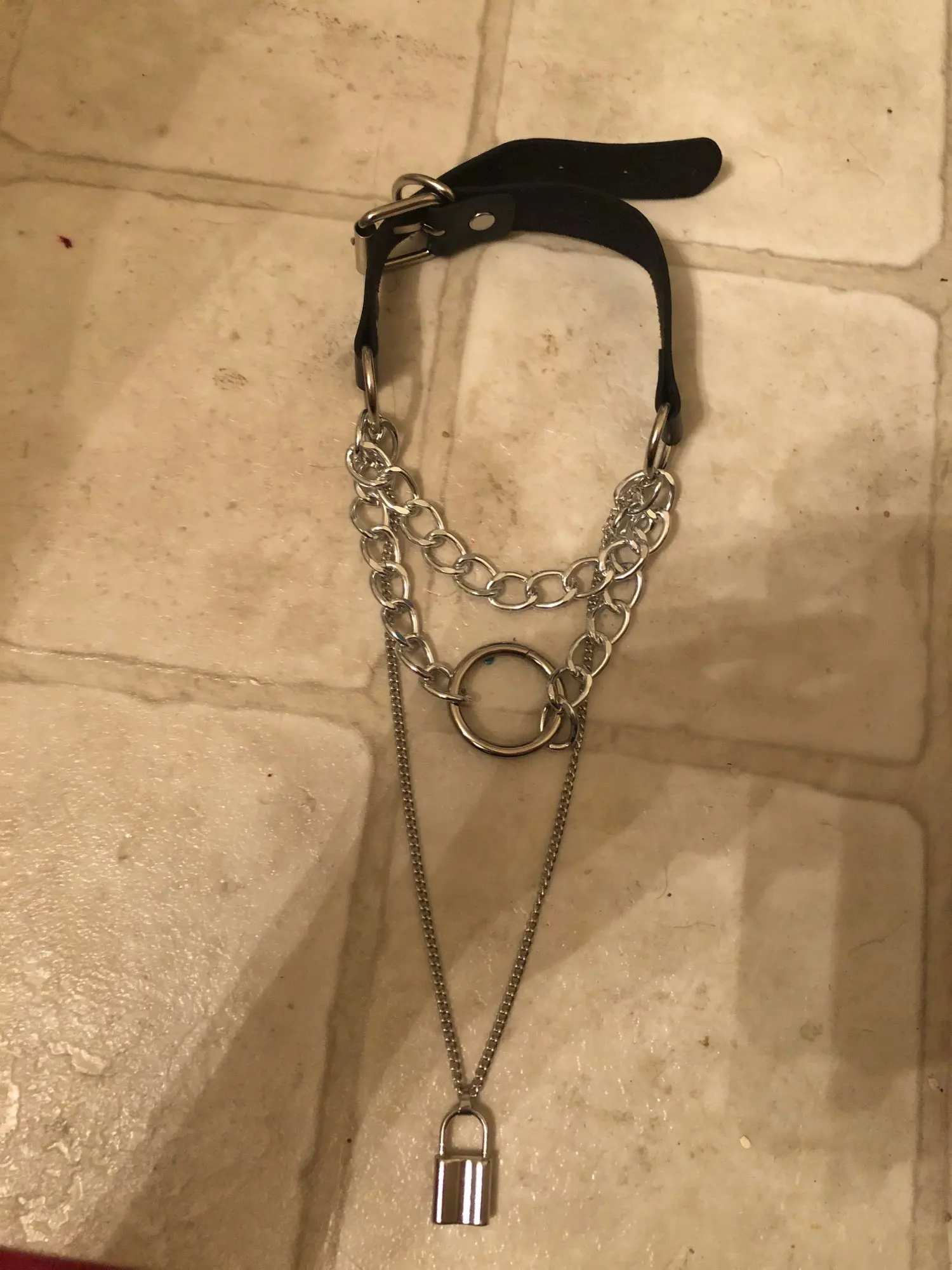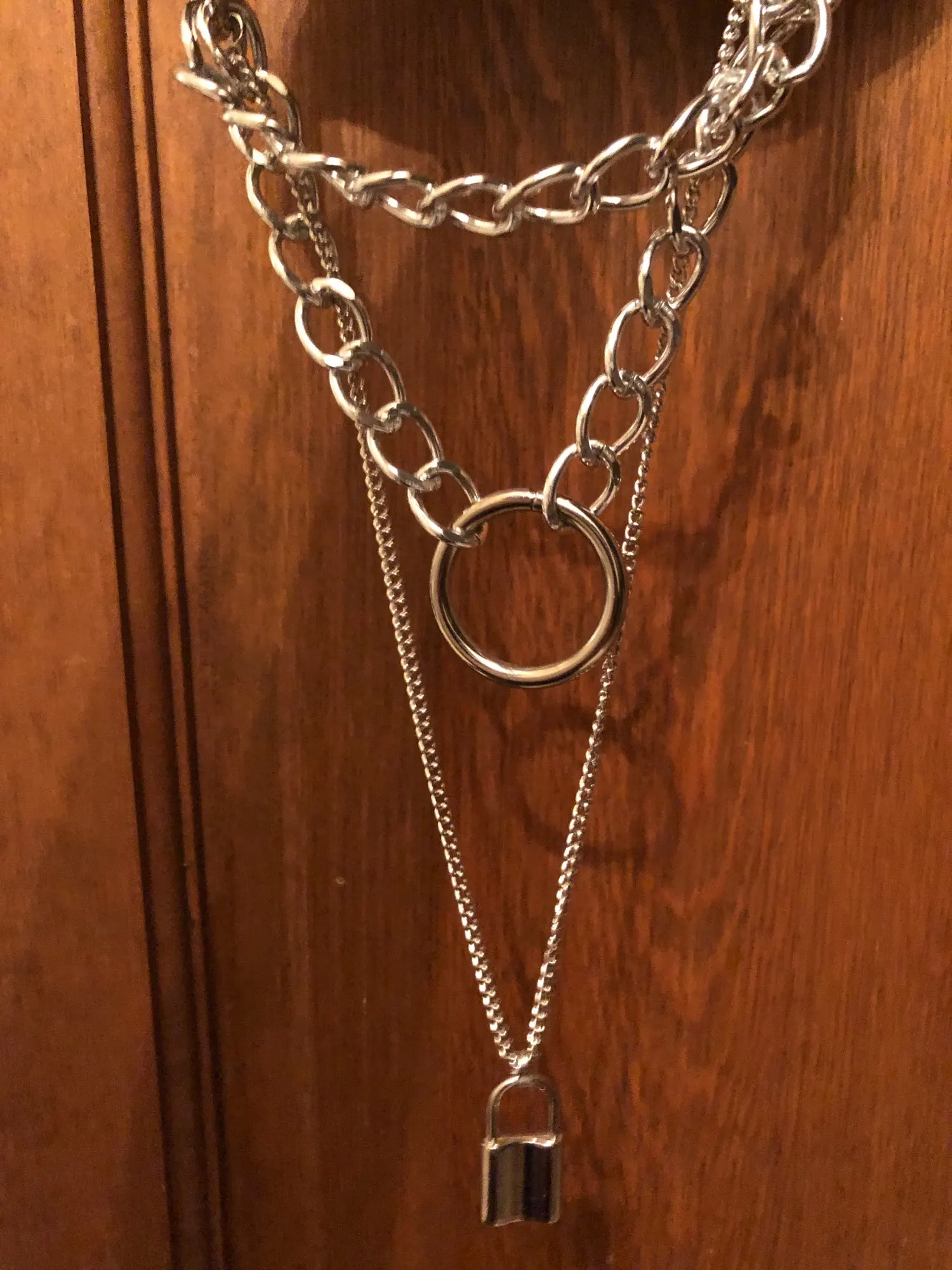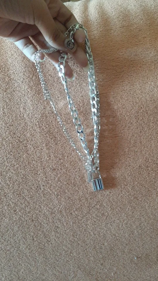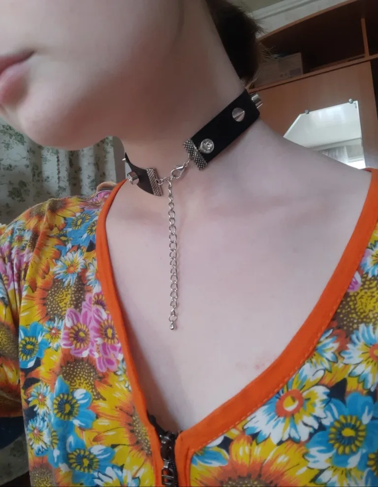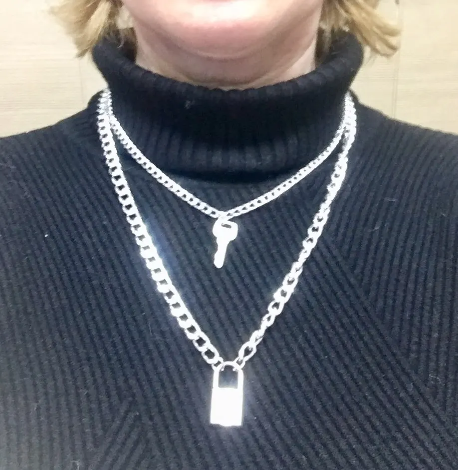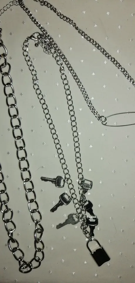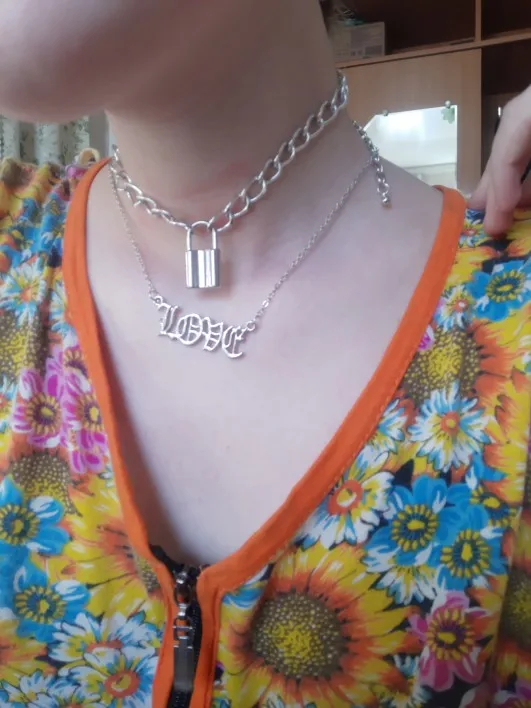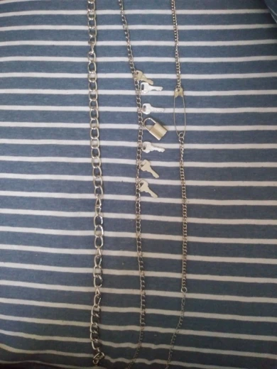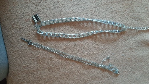 The chains are very beautiful and light. It is convenient to buckle. The choker is pleasant to the body, soft. The lock is heavy, like the keys. the chain with the lock can act as a choker