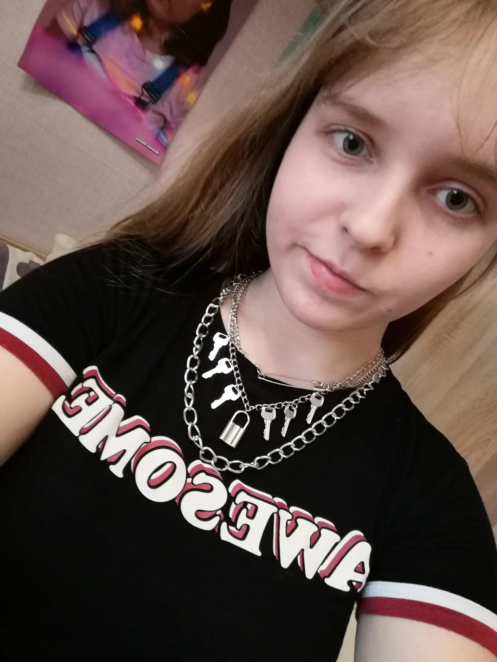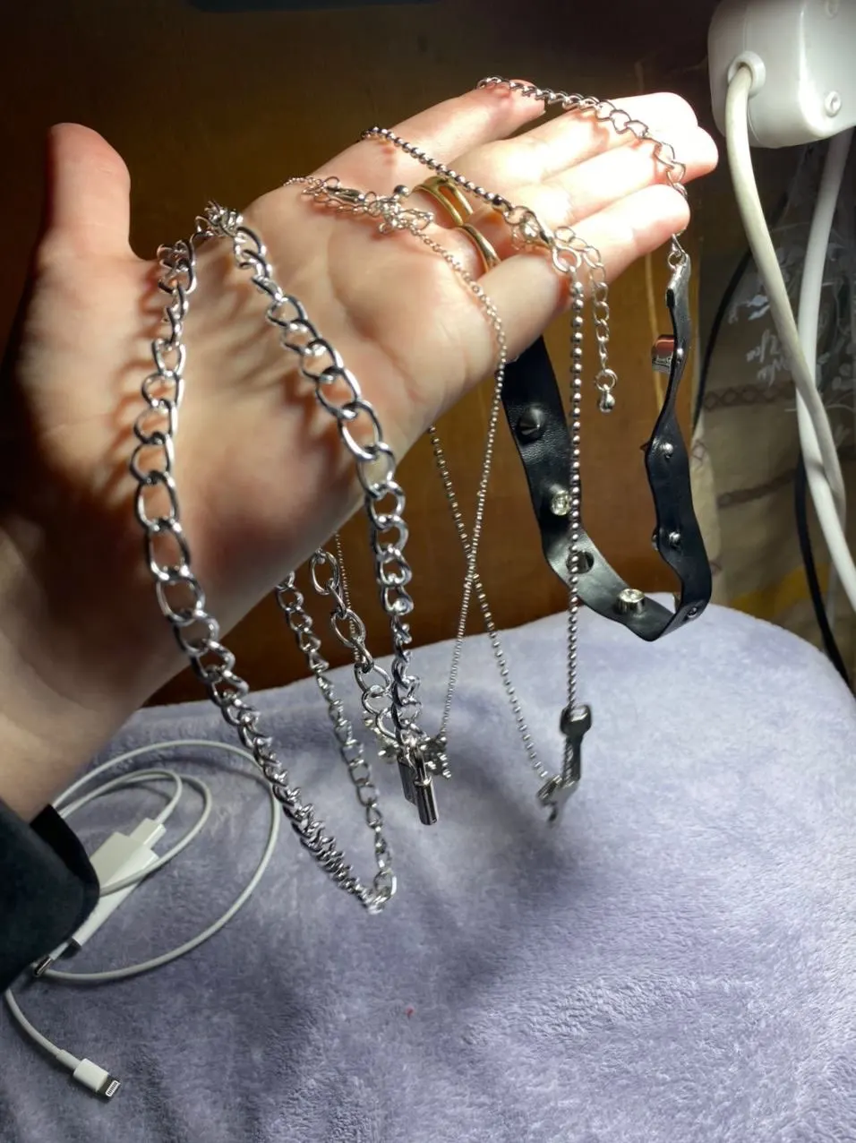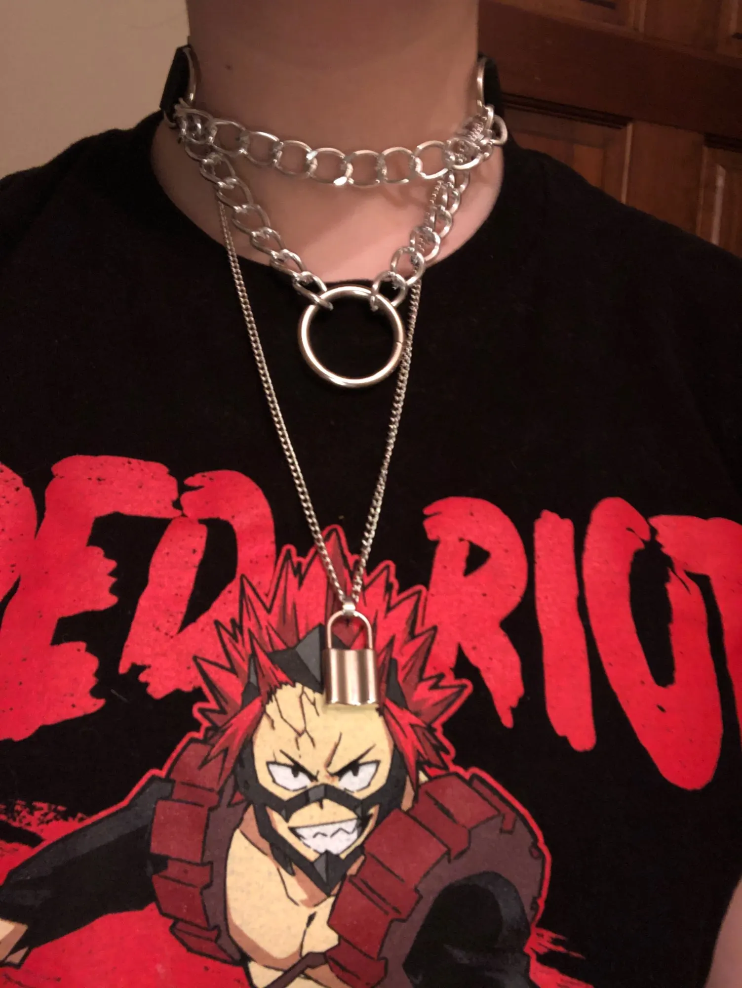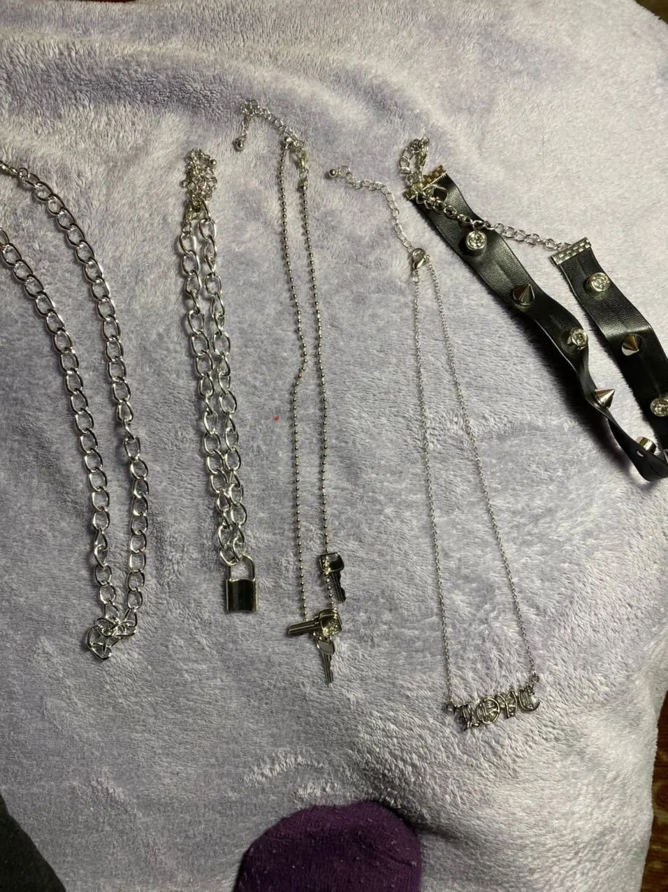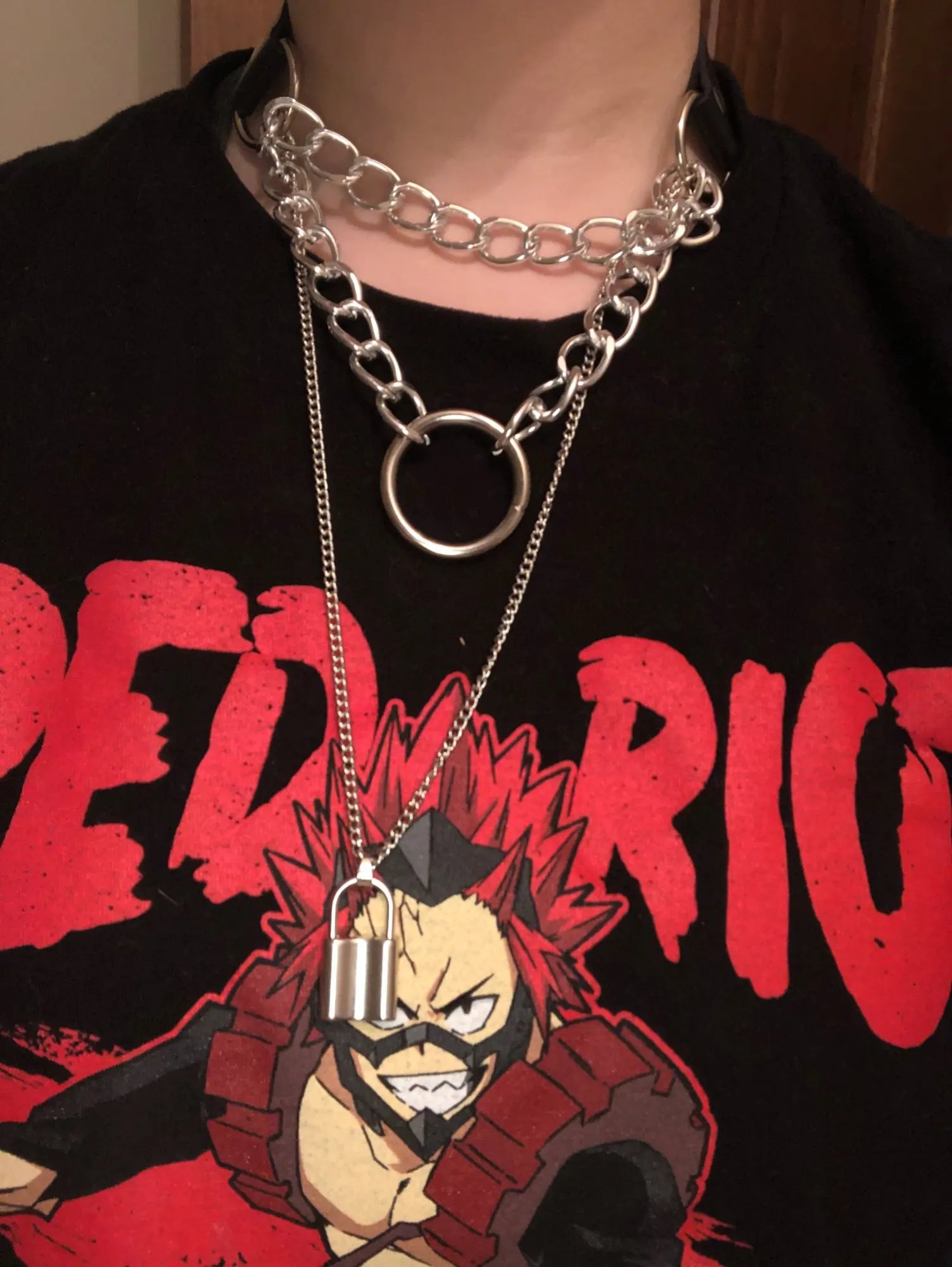 The chains are very beautiful and light. It is convenient to buckle. The choker is pleasant to the body, soft. The lock is heavy, like the keys. the chain with the lock can act as a choker