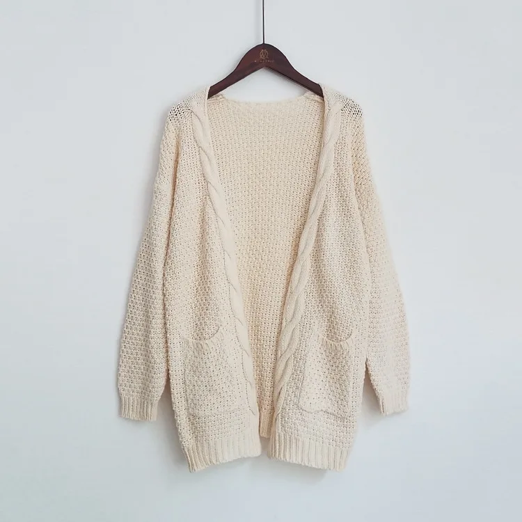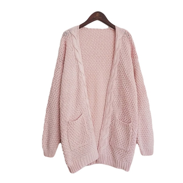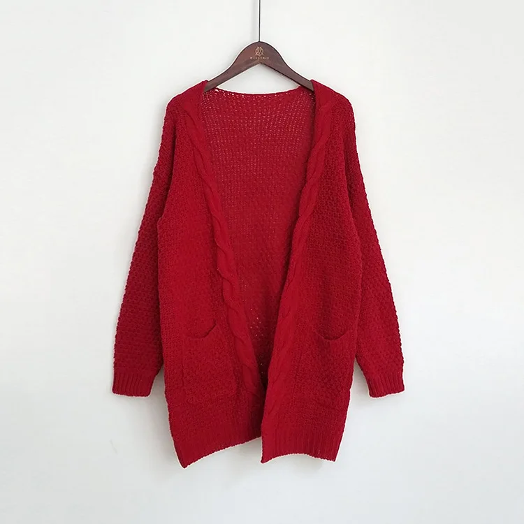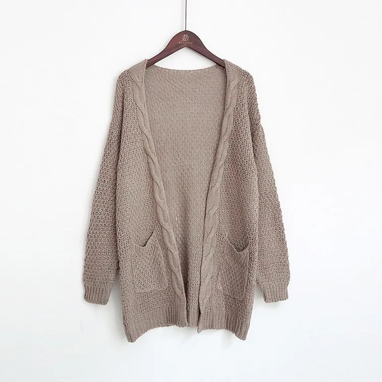 FREE SHIPPING Big Pocket Knitted Oversized sweater female Solid Cardigans JKP1096