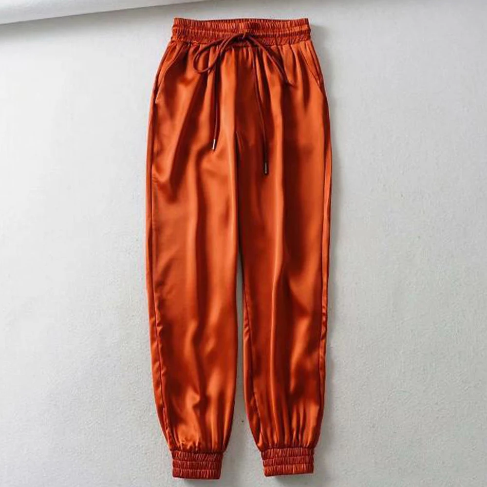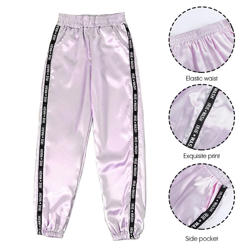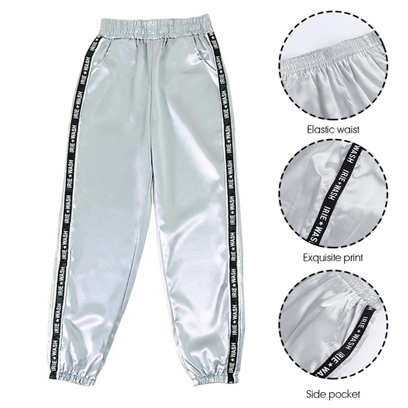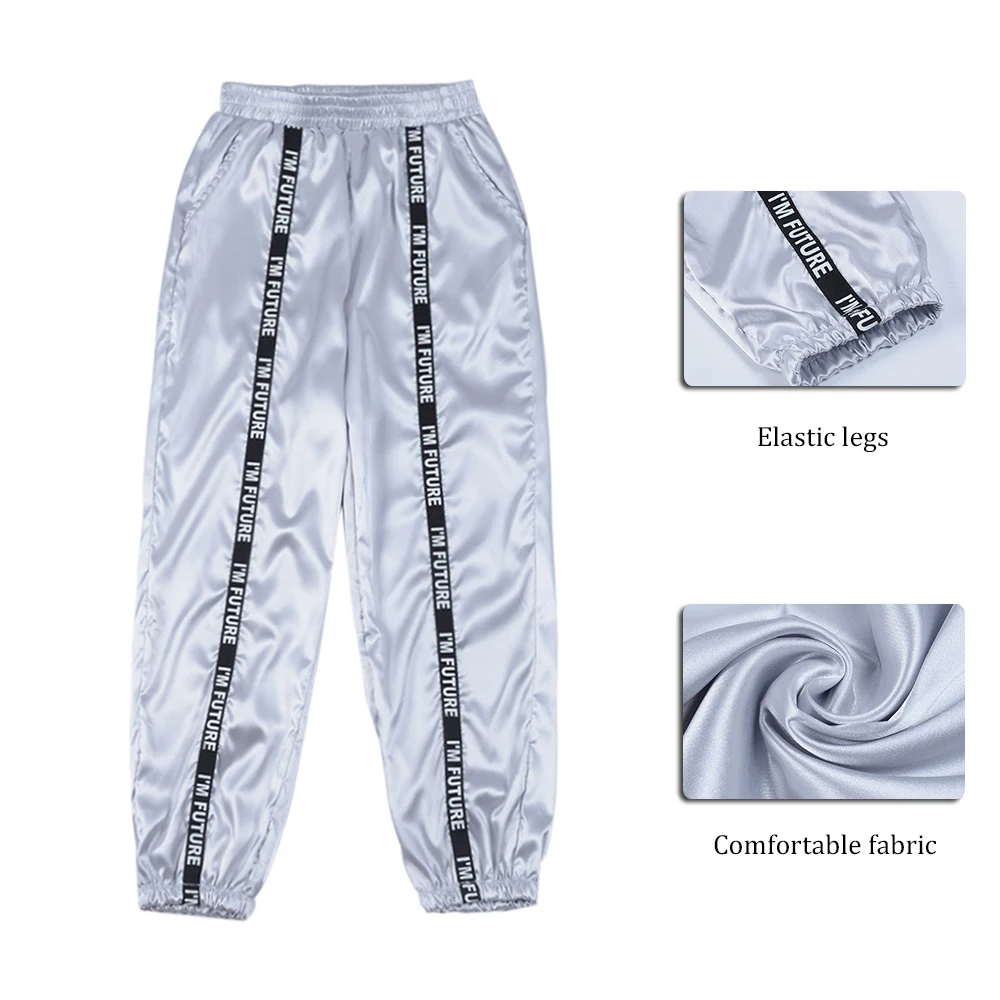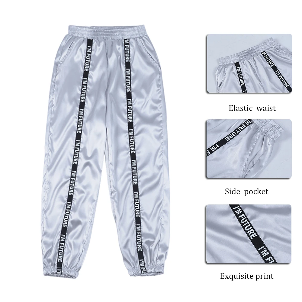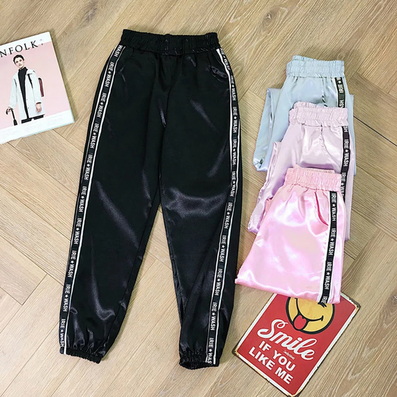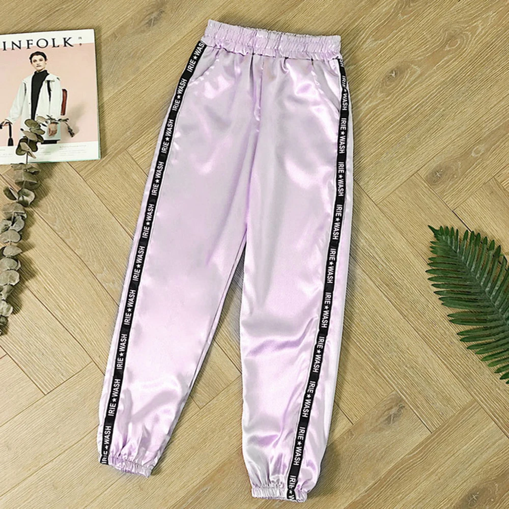 FREE SHIPPING Big Pocket Satin Highlight Harem Pants Women Glossy Sport Ribbon Trousers BF Harajuku Joggers Women’s Sports Pants JKP3741