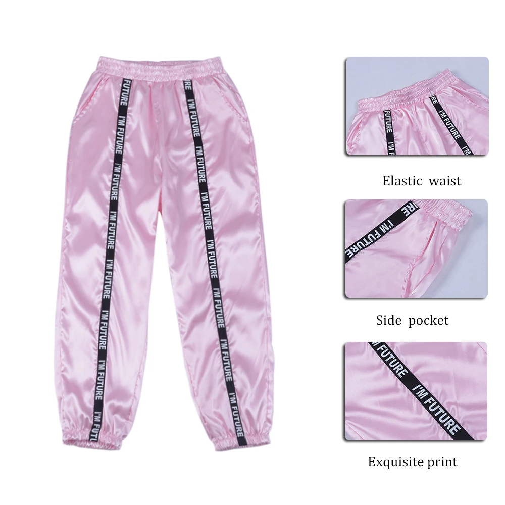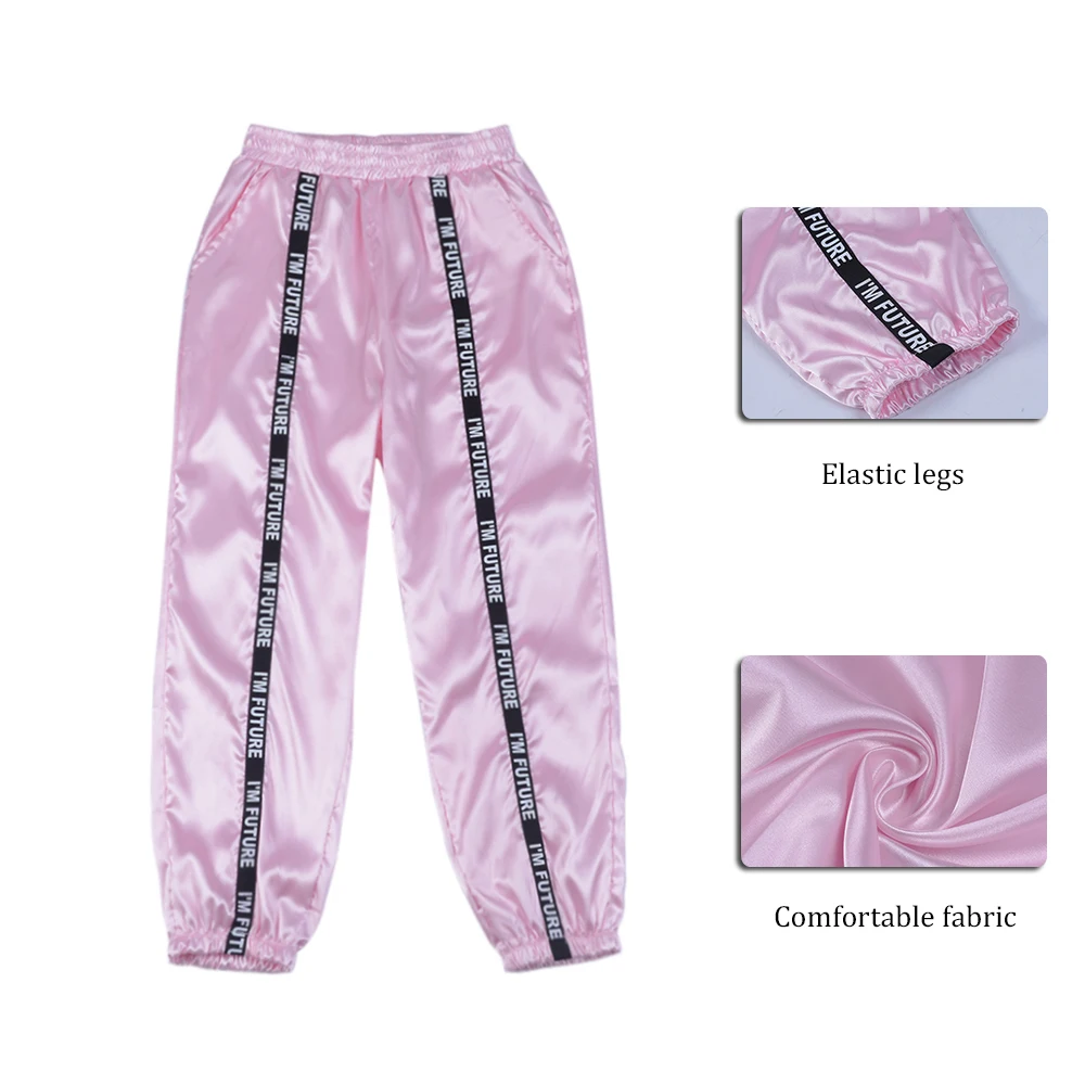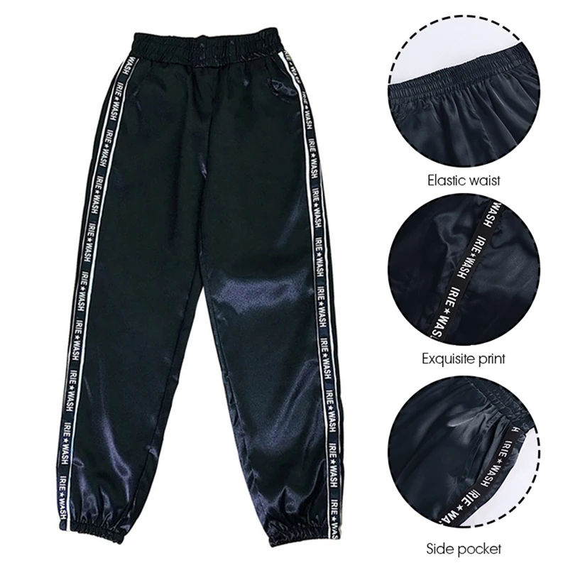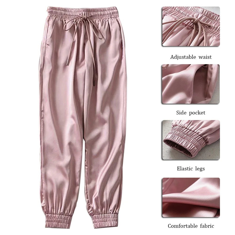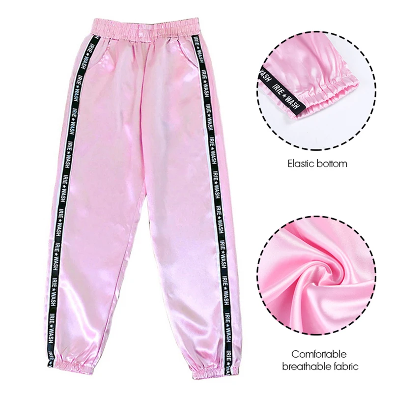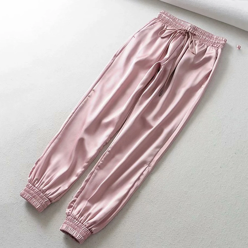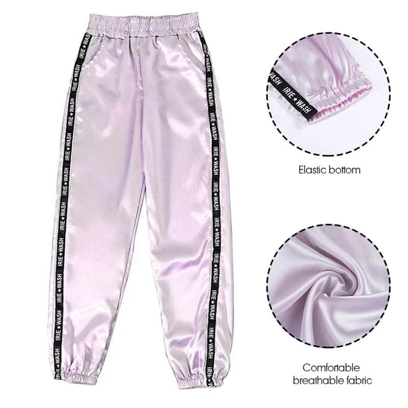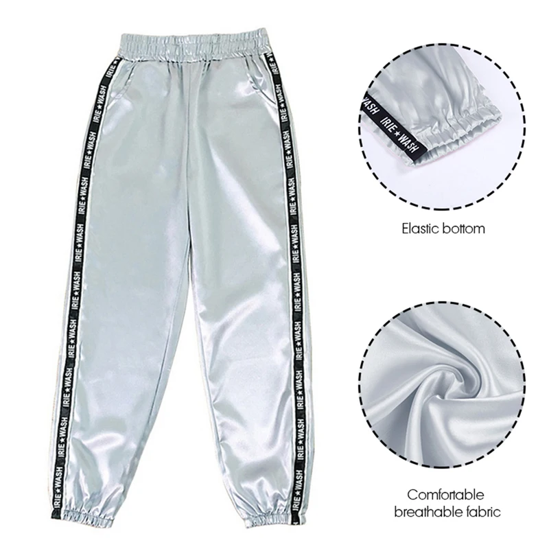 FREE SHIPPING Big Pocket Satin Highlight Harem Pants Women Glossy Sport Ribbon Trousers BF Harajuku Joggers Women’s Sports Pants JKP3741