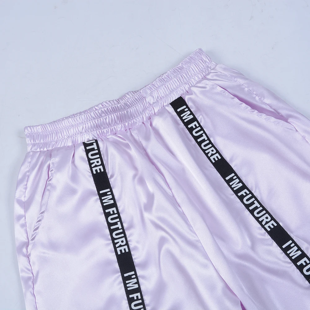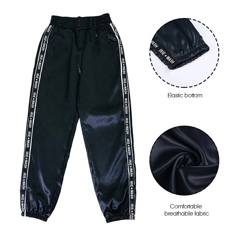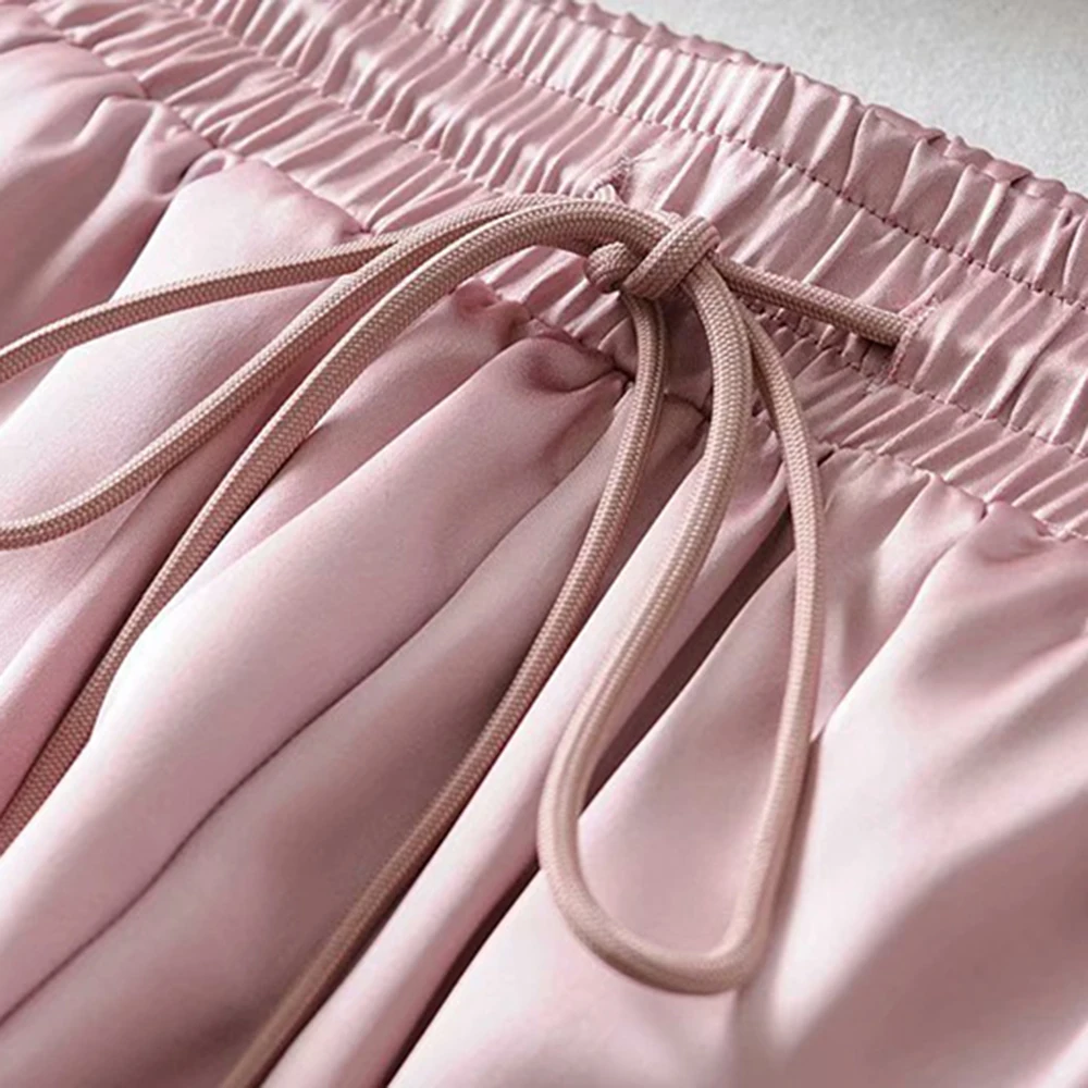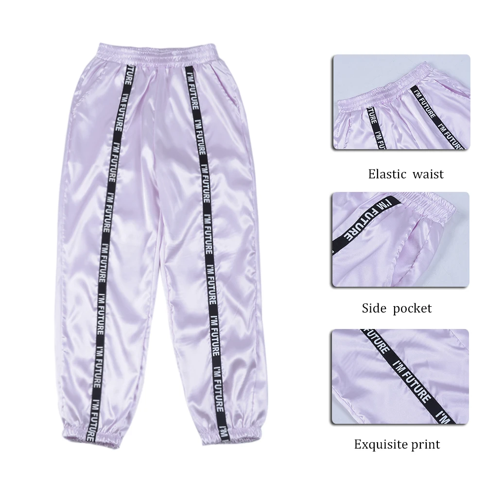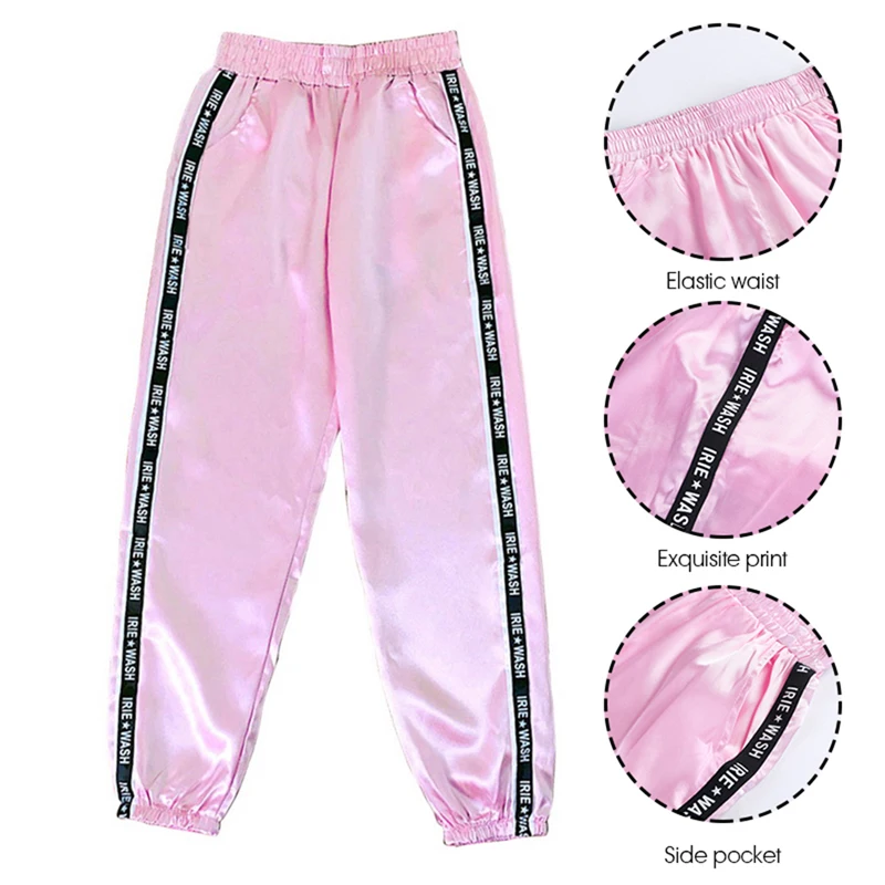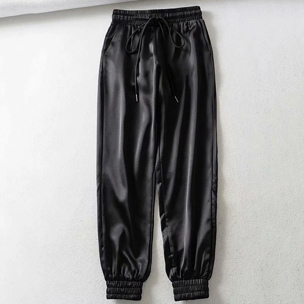 FREE SHIPPING Big Pocket Satin Highlight Harem Pants Women Glossy Sport Ribbon Trousers BF Harajuku Joggers Women’s Sports Pants JKP3741