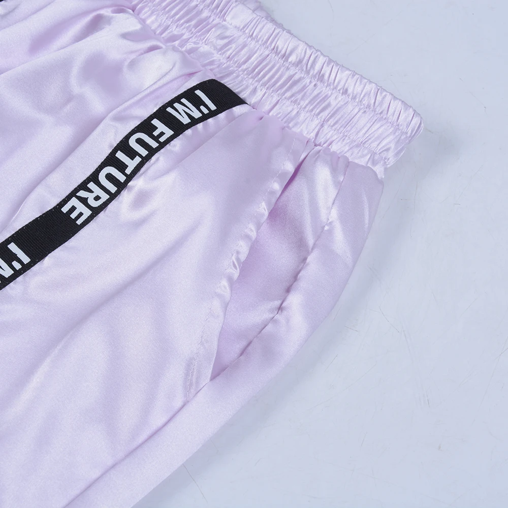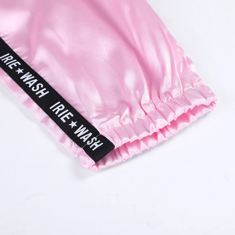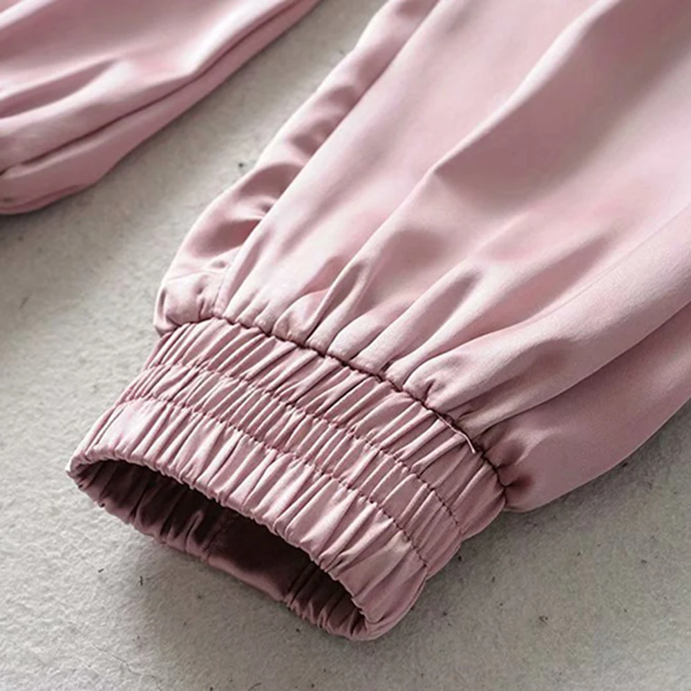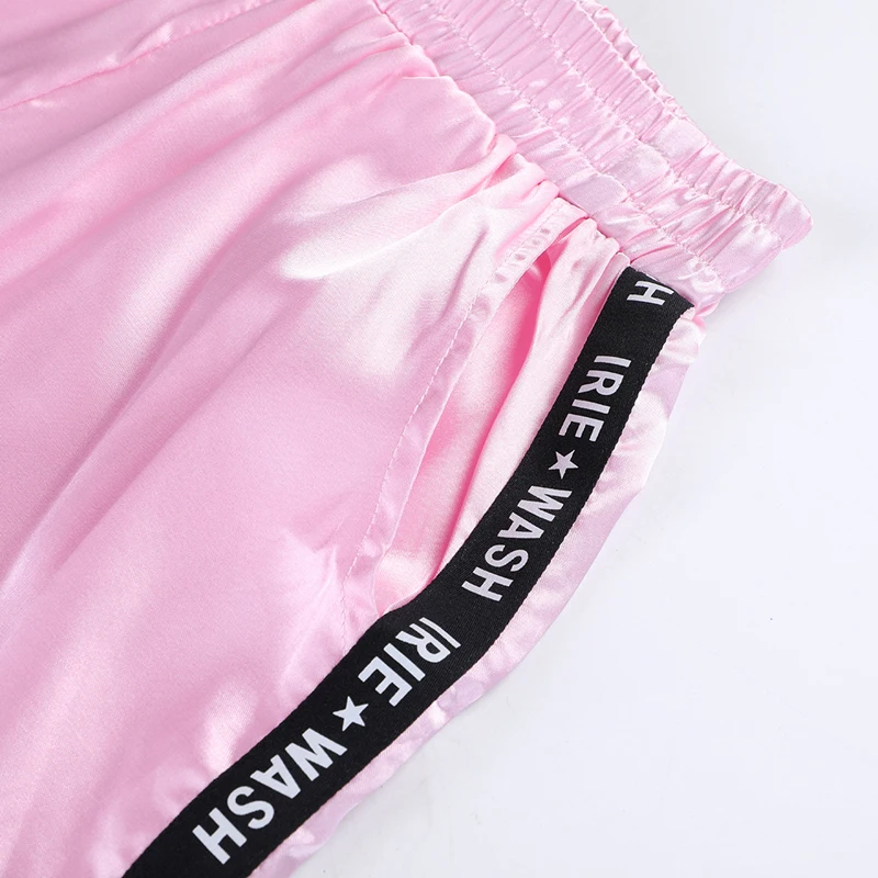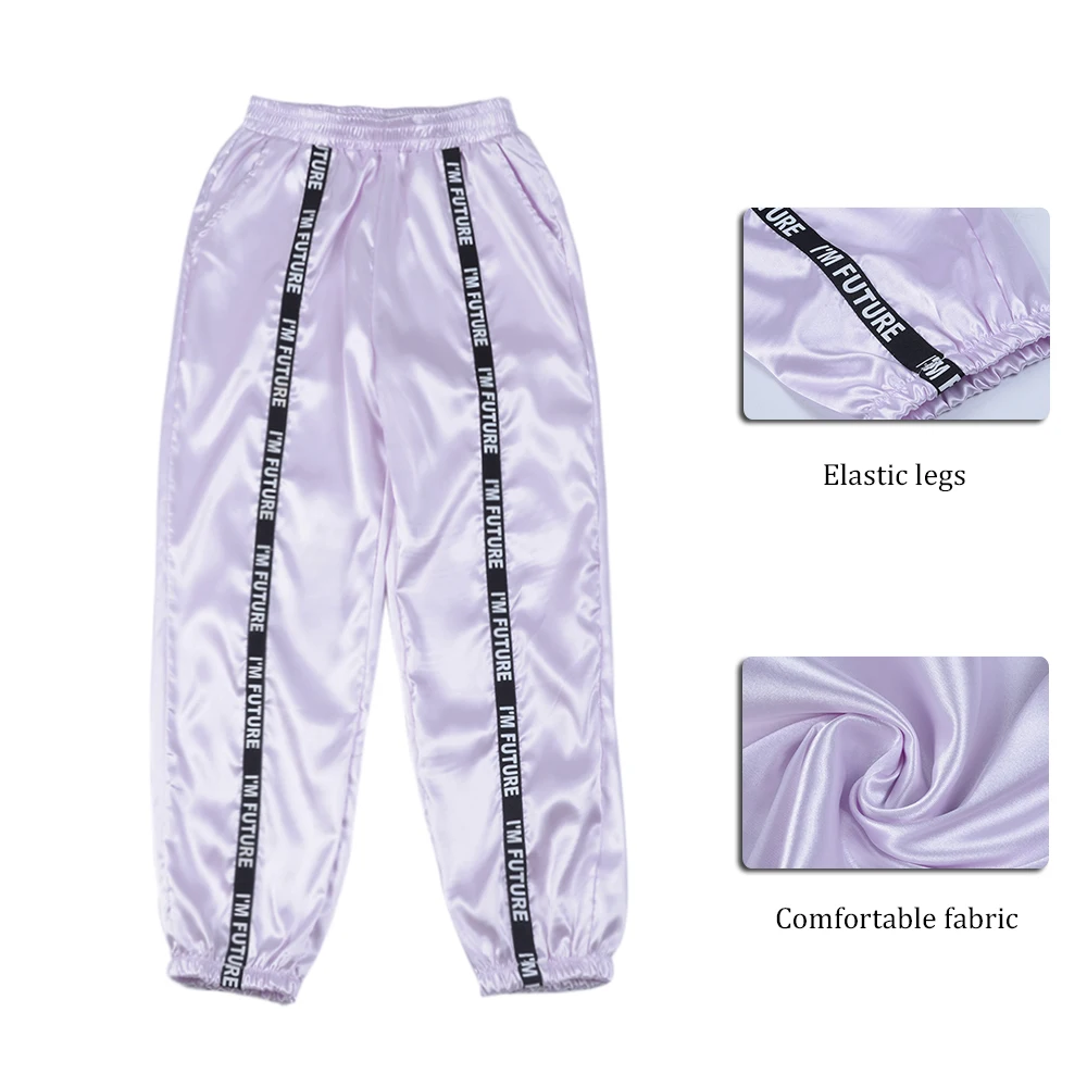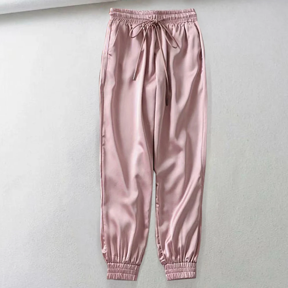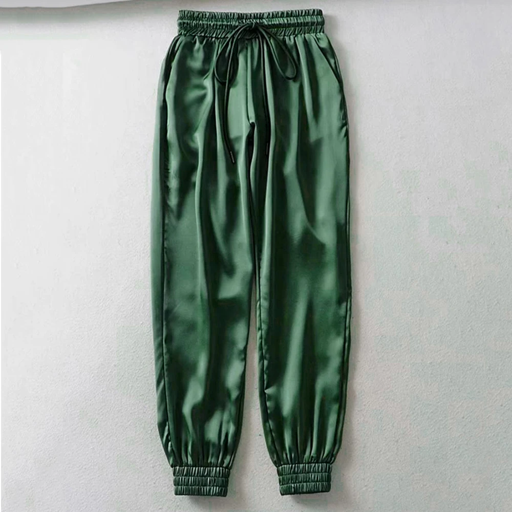 FREE SHIPPING Big Pocket Satin Highlight Harem Pants Women Glossy Sport Ribbon Trousers BF Harajuku Joggers Women’s Sports Pants JKP3741