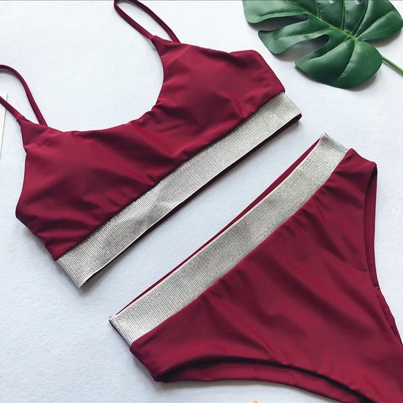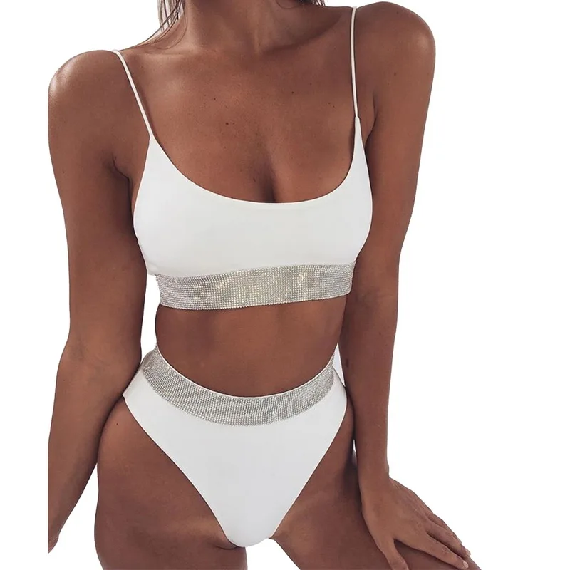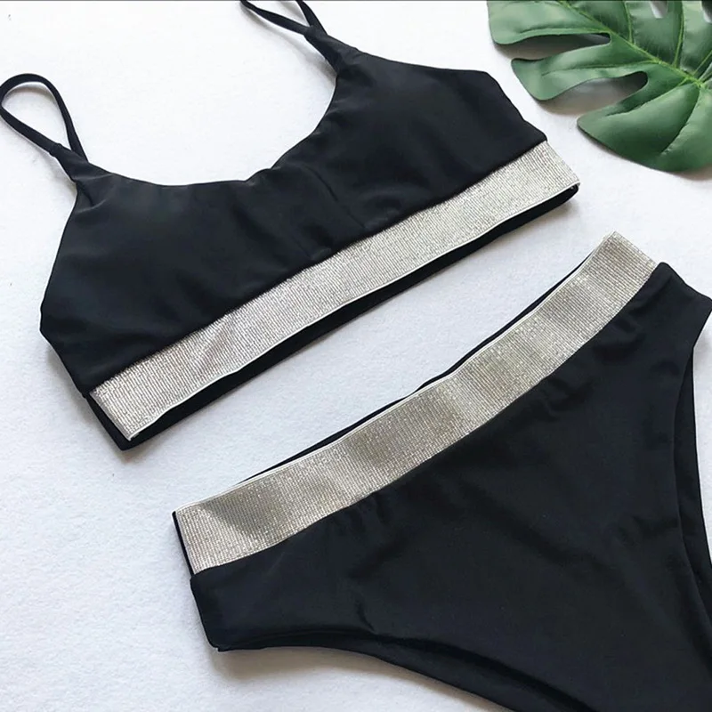 FREE SHIPPING Bikini Sequins Patchwork Two Piece Set JKP448
