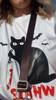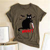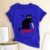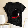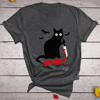 FREE SHIPPING Black Cat What Tshirt Murderous Cat Knife Women Funny T Shirt JKP4751