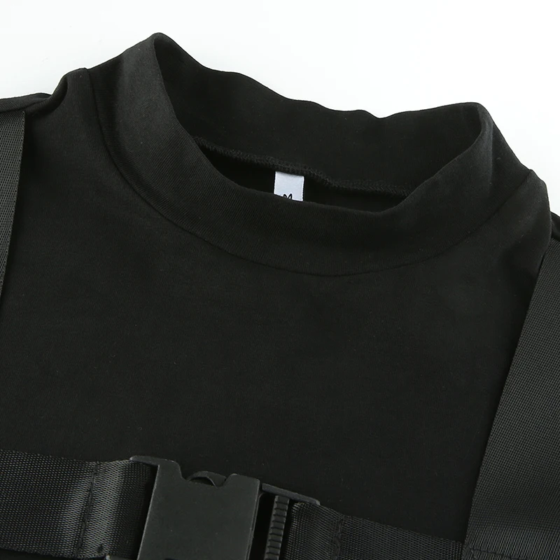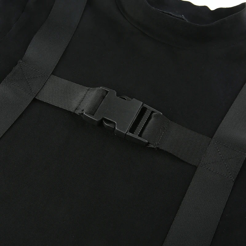 Home / T-shirts / FREE SHIPPING Black Gothic Tshirt Short Sleeve With Buckle Ribbon JKP4790