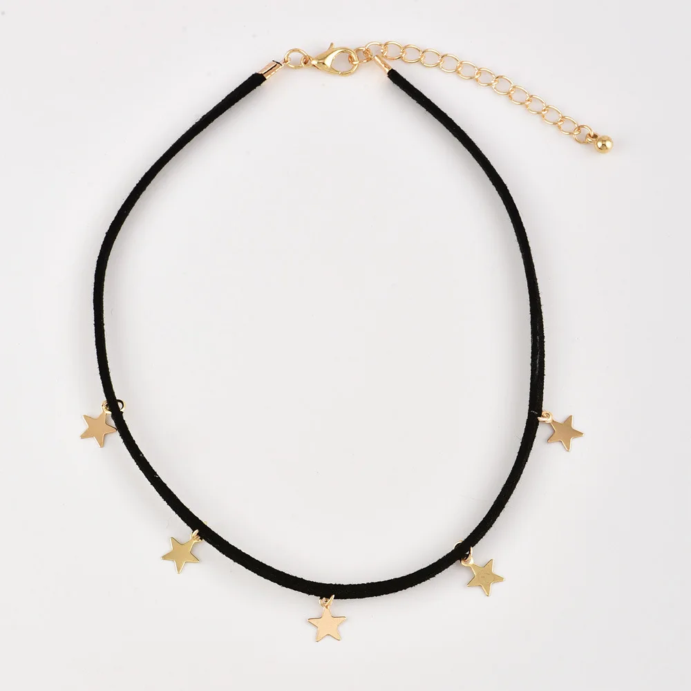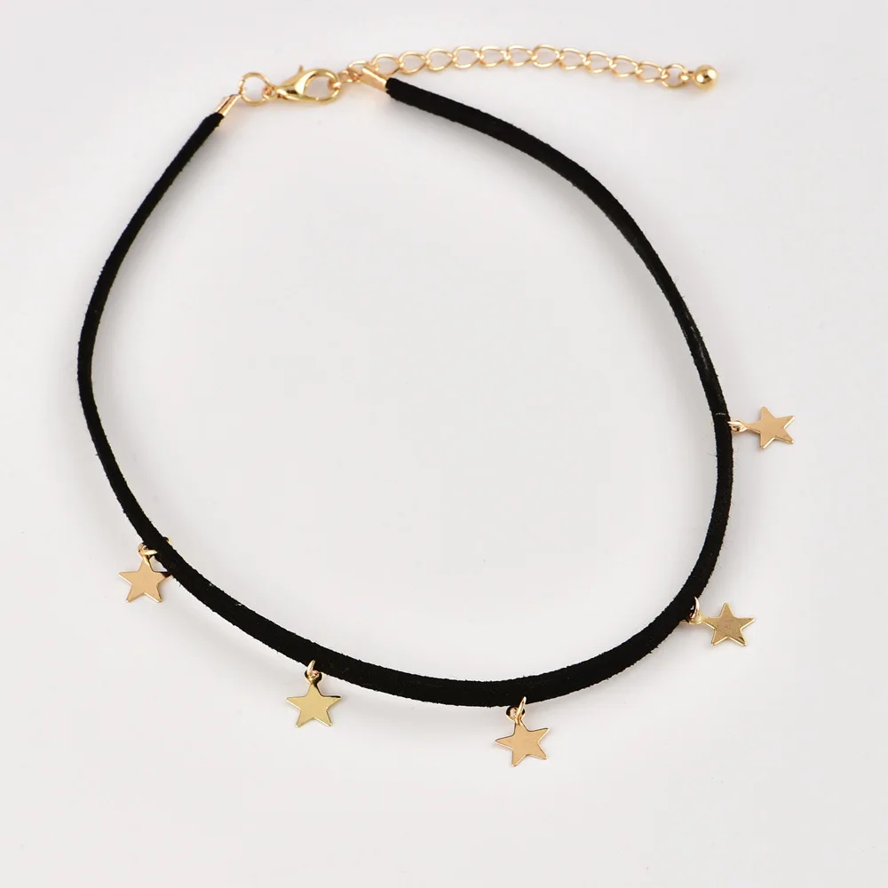 FREE SHIPPING Black Leather Rope Star Choker for Women Jewelry JKP1471