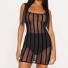 FREE SHIPPING Black Mesh Sexy Striped Dresses Sleeveless Tank Dress Perspective Mini Women Beach Vestidos See Trough Streetwear Summer Dresses JKP2957
