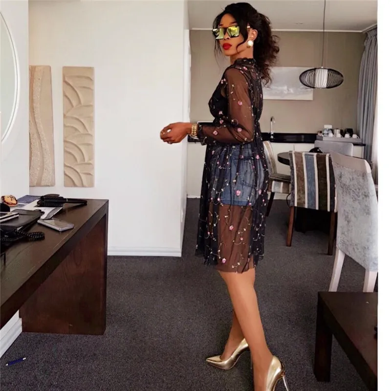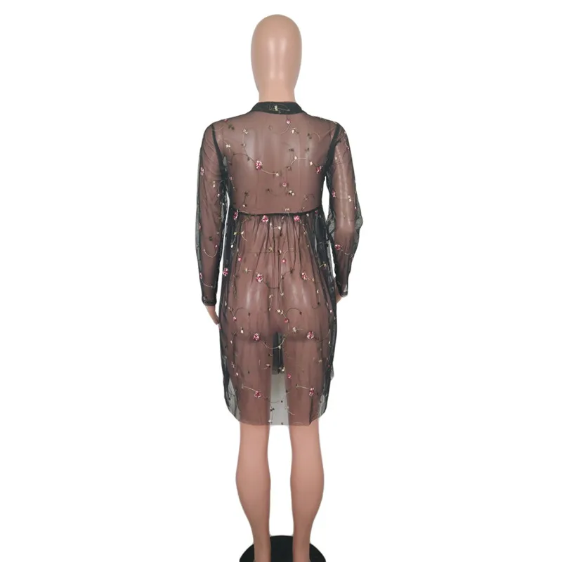 FREE SHIPPING Black Sheer Mesh Floral Long Sleeve JKP695