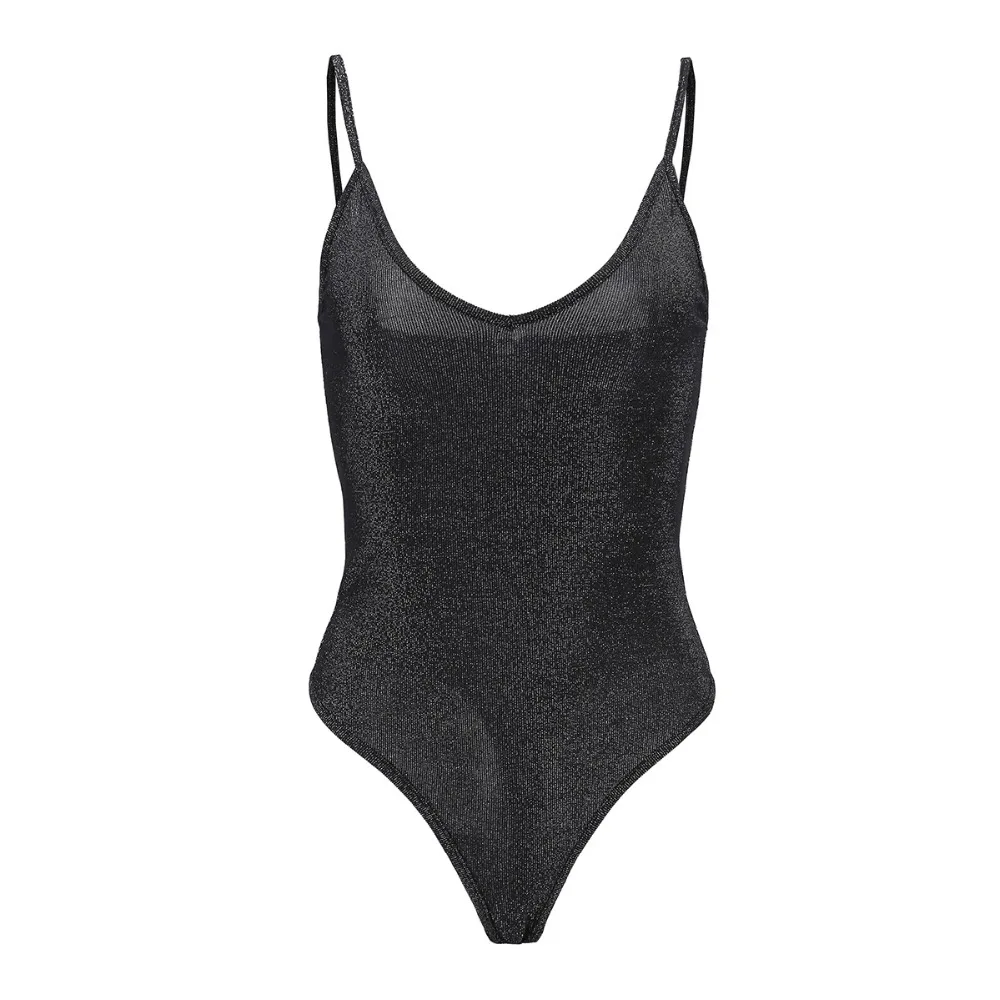 FREE SHIPPING Black Silver Glitter Bodysuit Sexy Straps Plain Skinny Sleeveless Bodysuits JKP1398