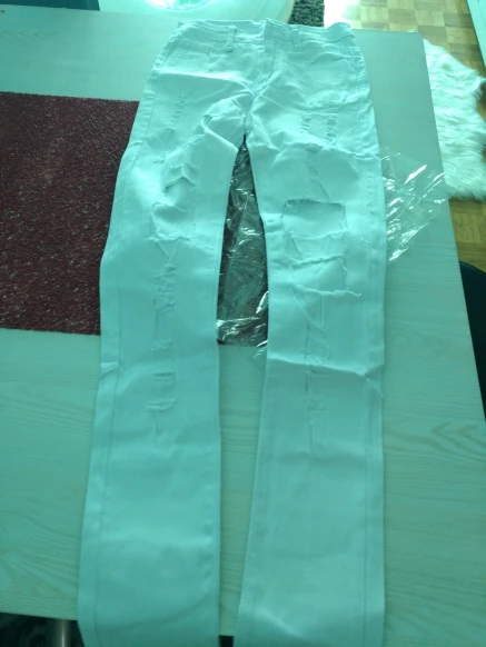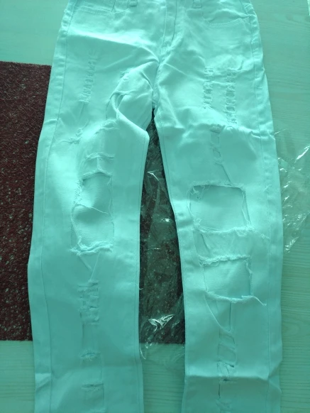 Pants are as pictures. Not jean material but good all the same! A slight picklely smell but nothing some fabric softener cant fix. Happy with my parcel. Will be ordering more!!!! Thanks!