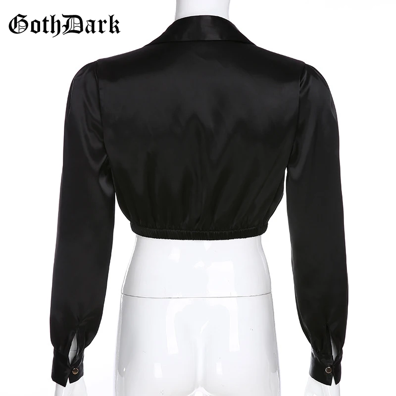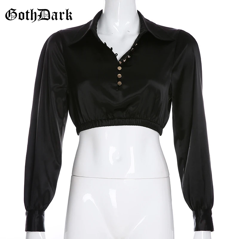 FREE SHIPPING Black Vintage Solid Gothic Female T-shirts Harajuku Longsleeve Aesthetic Cropped Top Autumn 2019 Rivet Turtleneck Punk JKP1999