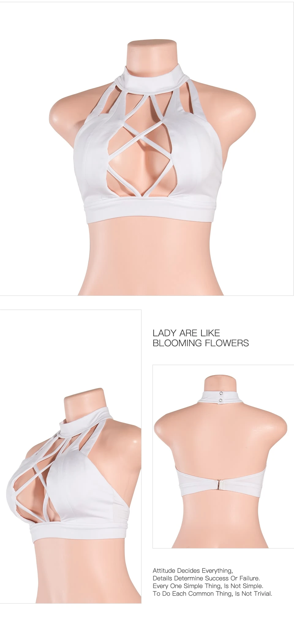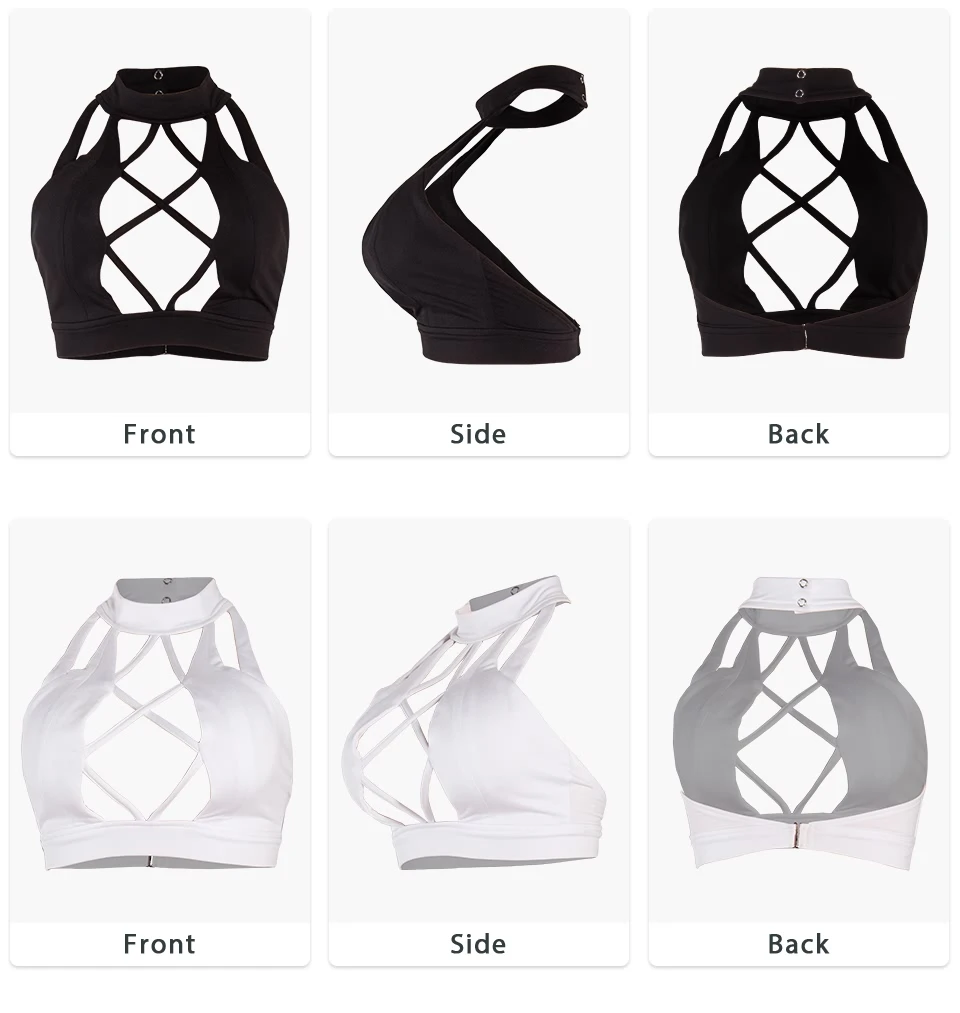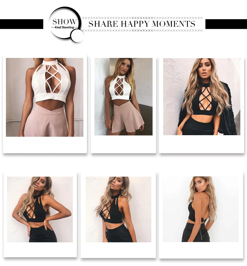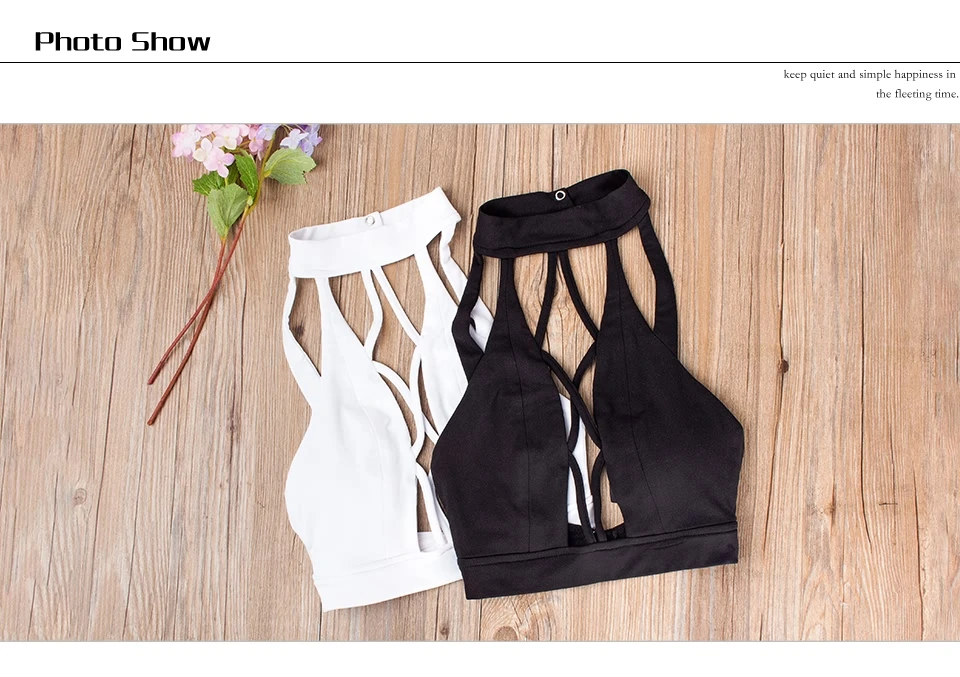 FREE SHIPPING Black White Halter Crop Top JKP13406