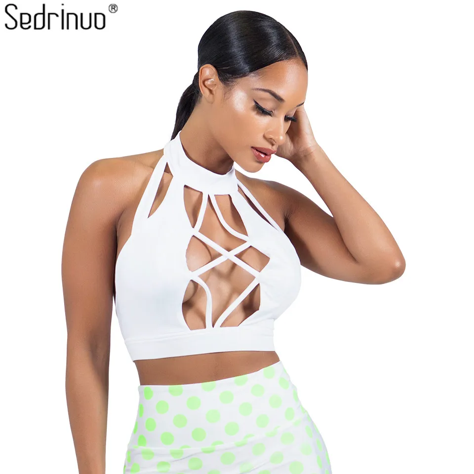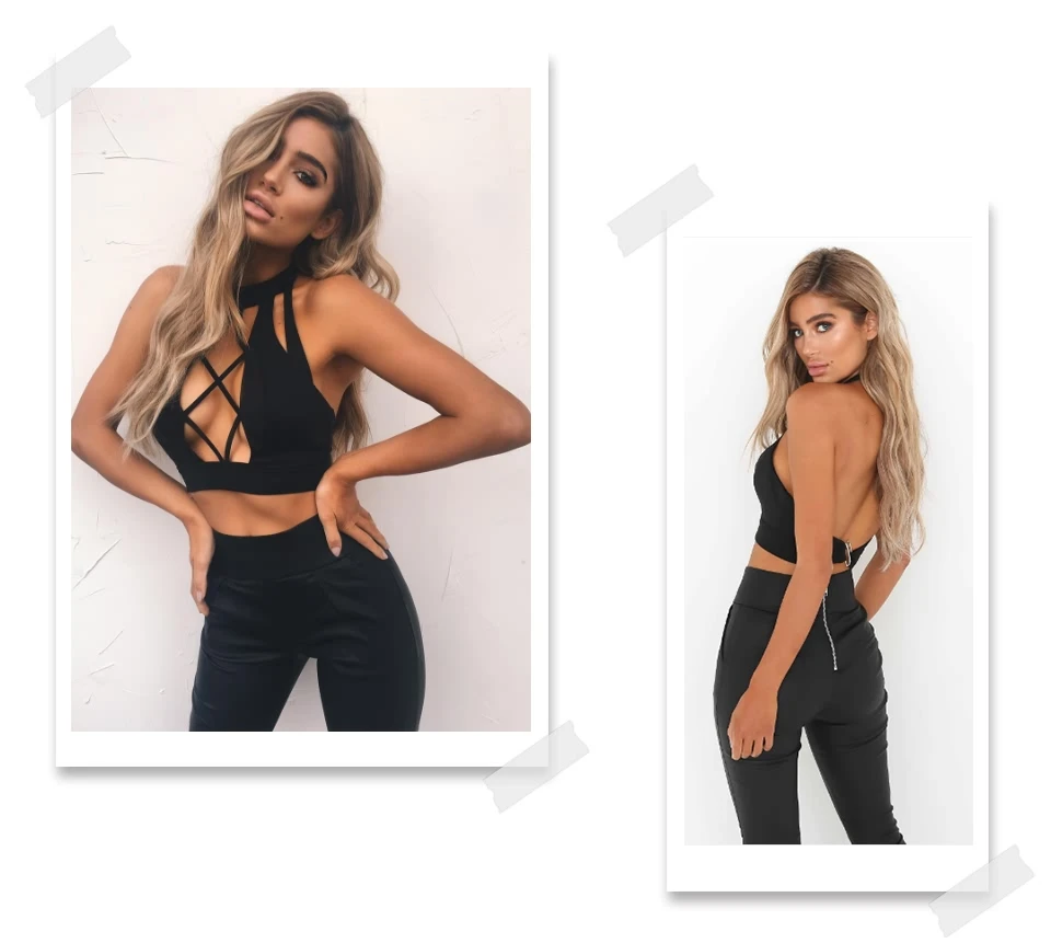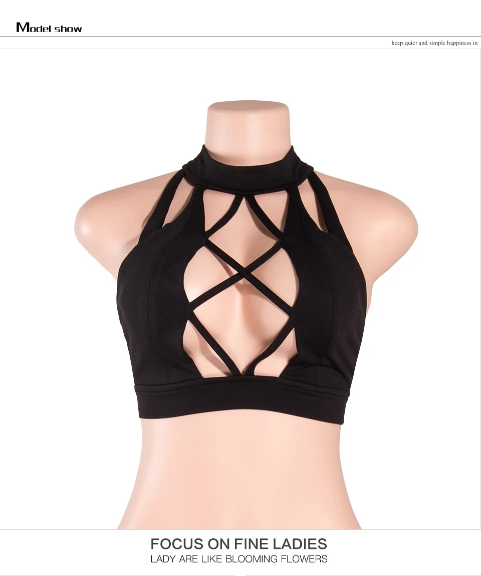 FREE SHIPPING Black White Halter Crop Top JKP13406