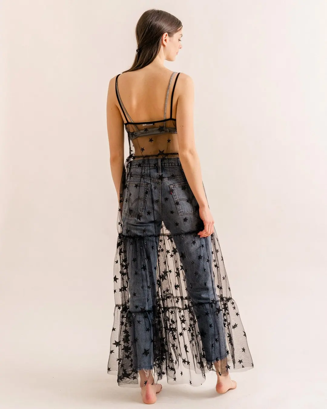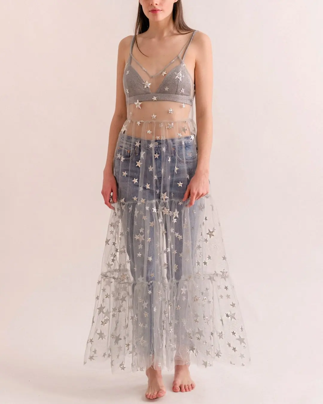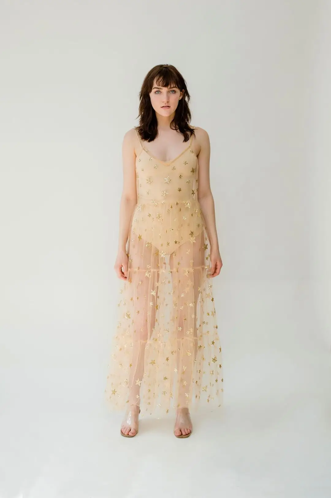 FREE SHIPPING Bling Bling Star Sheer Mesh Long Dresses JKP5959