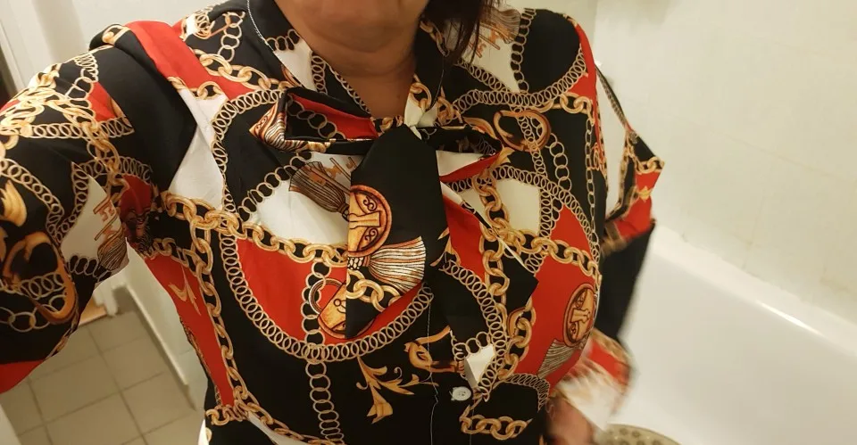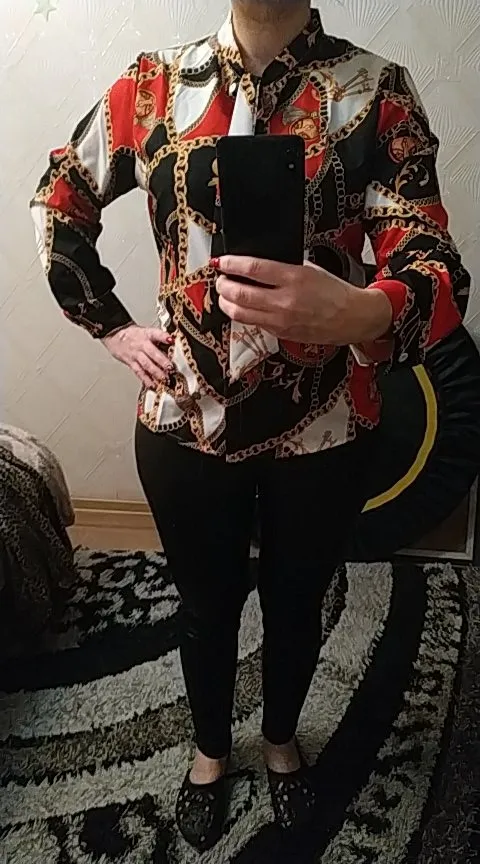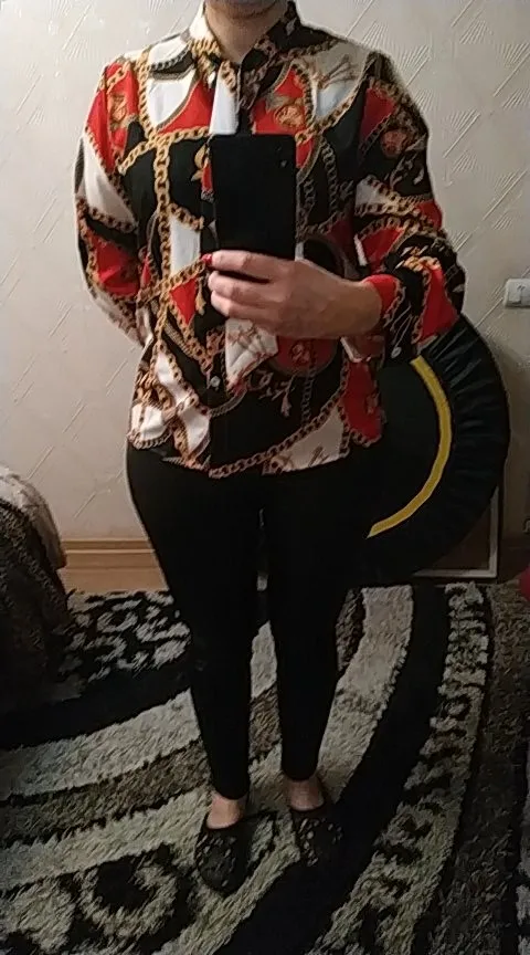 I like the blouse. It can be worn to the trousers and to the skirt. Synthetic material :( full Looks good. It's been a long time.