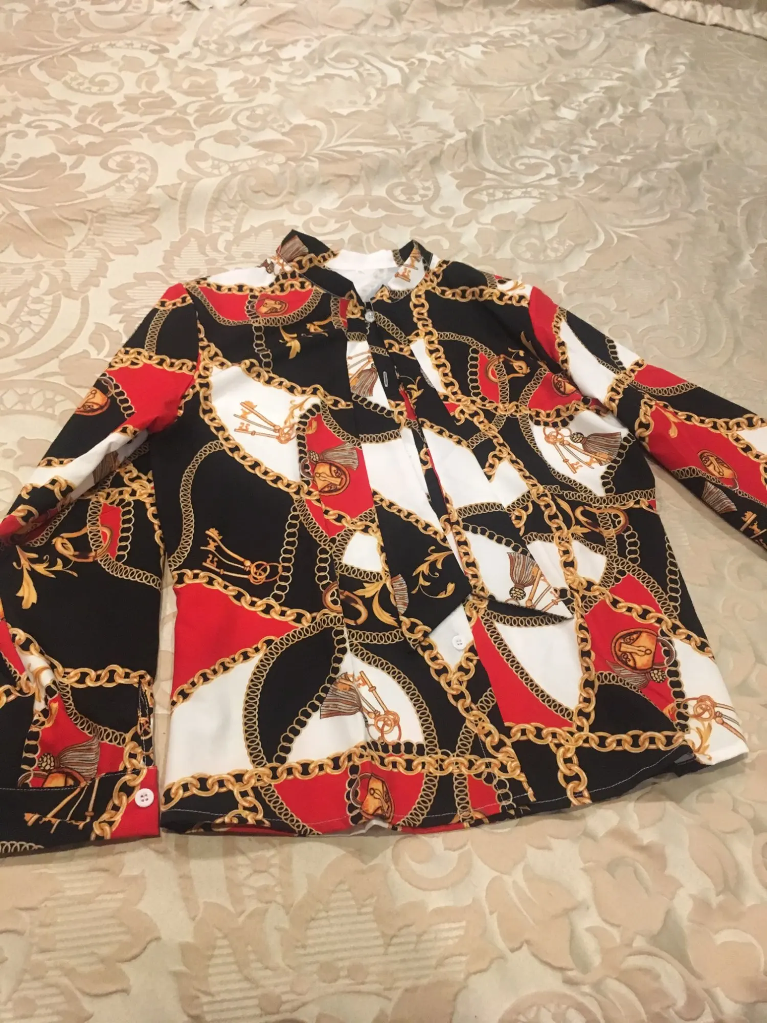 FREE SHIPPING Blouse Chain Branded Letter Print JKP4377