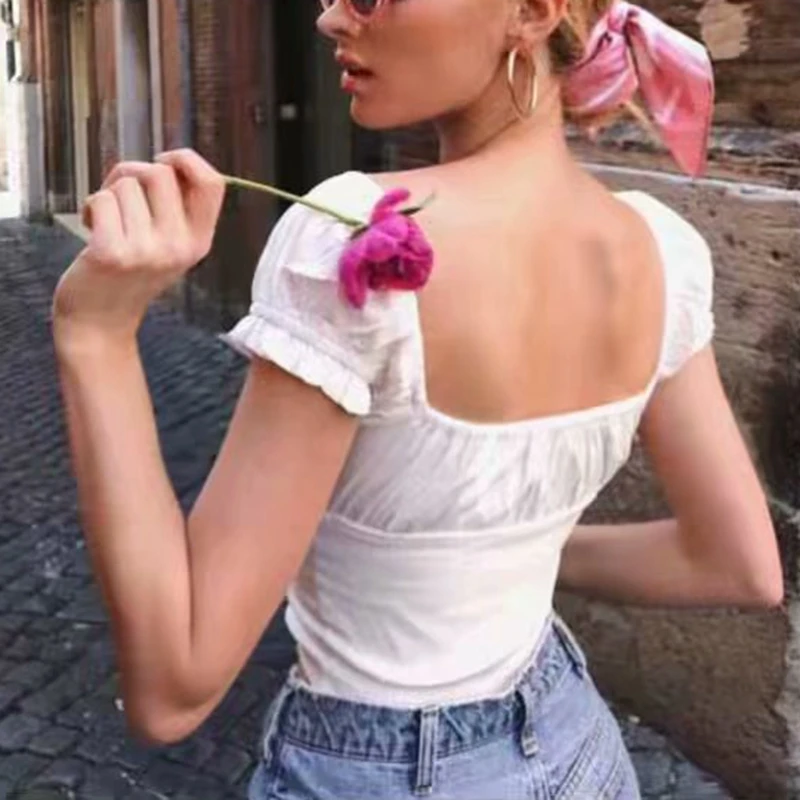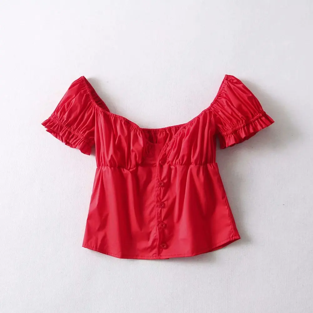 FREE SHIPPING Blouse Crop Top Ruffle Button Korean Shirt JKP1389
