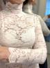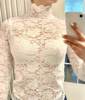 FREE SHIPPING Blouse Lace Turtleneck Crochet JKP4500