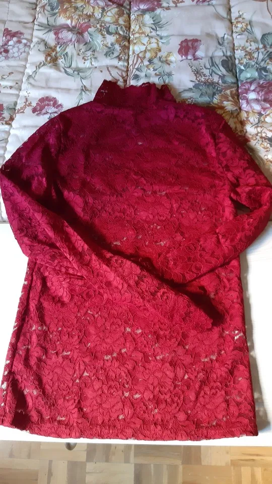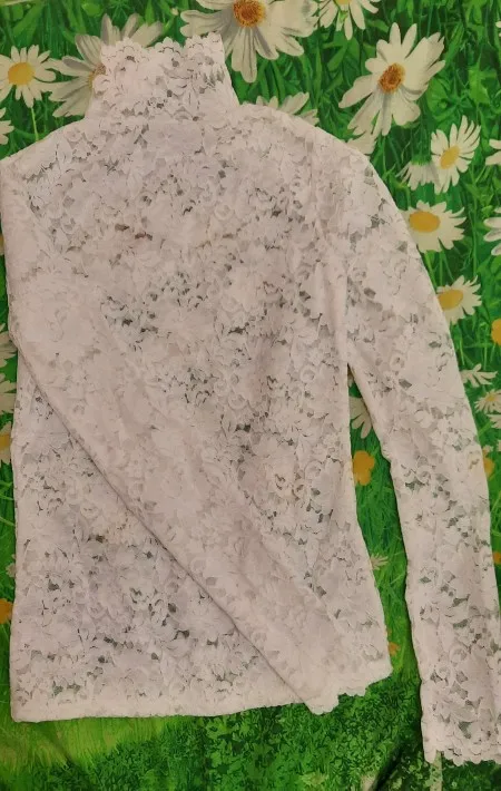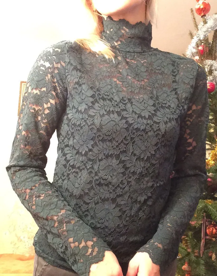 Blouse is very good quality. Lace is dense, pleasant in touch, without bright shine, slightly stretched. The color is green Noble. All seams are processed neatly. I did not communicate with the store. The order was processed and sent very quickly, for which many thanks to the seller. The purchase is very satisfied. Product and seller recommend.