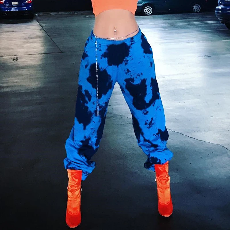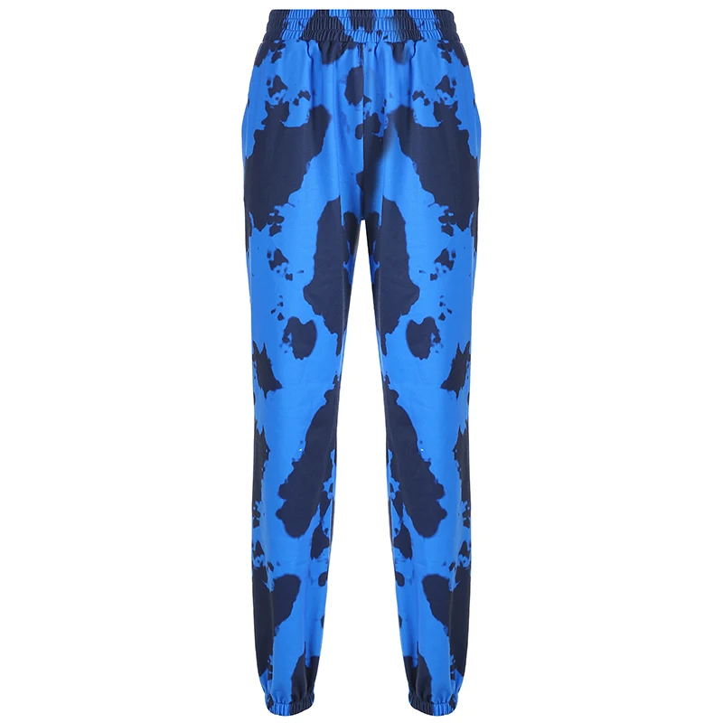 FREE SHIPPING Blue Tie Dye Hippie Sweatpants Women New Arrival 2019 Hip Hop Camo Pants Pockets Elastic High Waist Ladies Trousers JKP1923