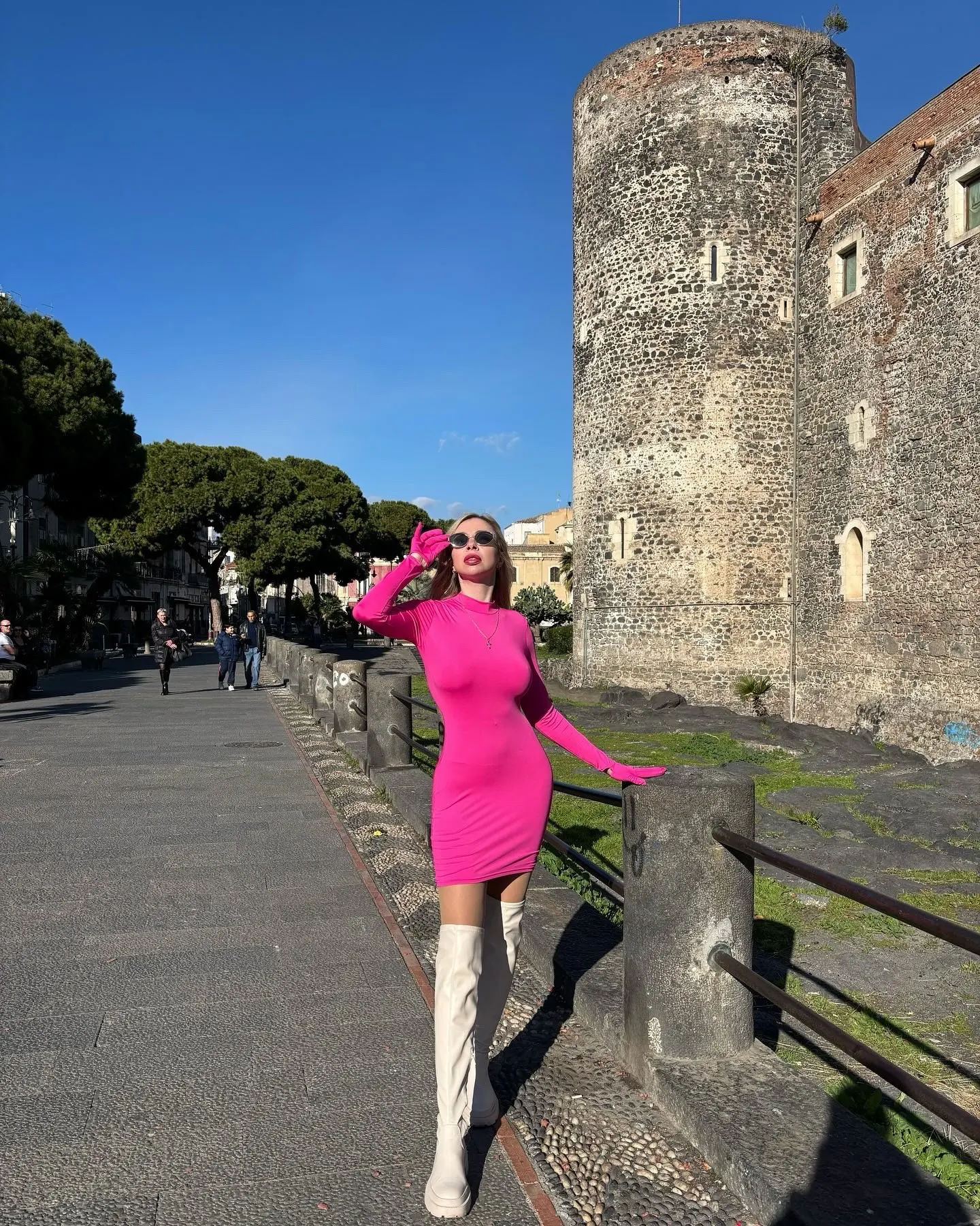 Home / Fashion / Dress / Free Shipping Bodycon Mini Dress with Gloves Women Long Sleeve Half Turtleneck Y2K Outfit JKP7266