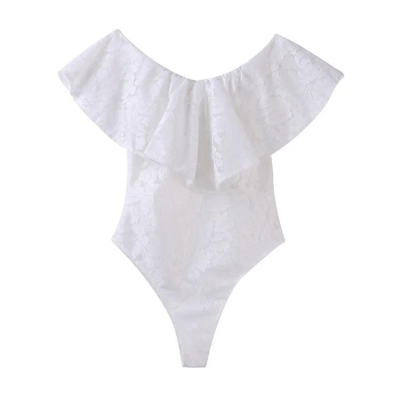 FREE SHIPPING Bodysuit Offshoulder Lace Embroidered JKP1373