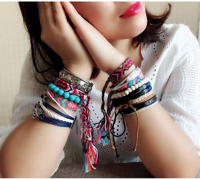 FREE SHIPPING Bohemian Nepal Thread Bracelet Bresilien Beach Foot Anklet Handmade String Cord Woven Leg Bracelets For Women Men Summer Jewelry JKP2846