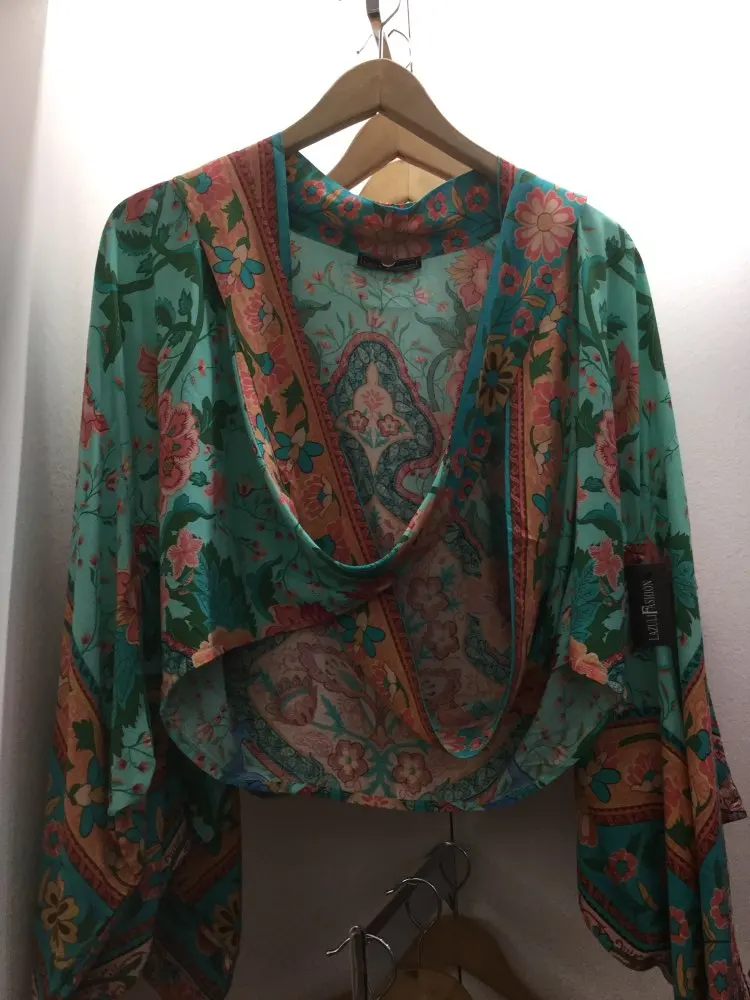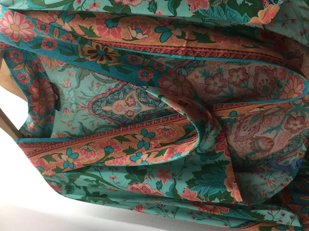 Dotarło quickly, niecały month. Beautiful colors and great quality material!