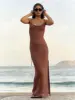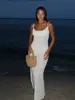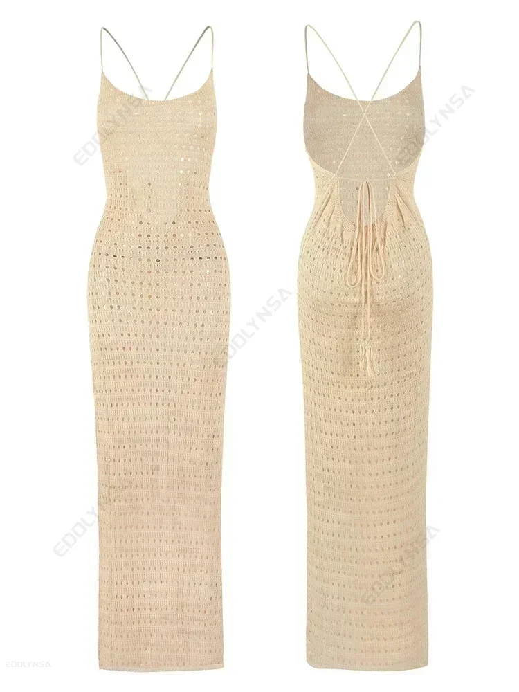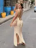 FREE SHIPPING Boho Crochet Maxi Dress Tassel Spaghetti Strap Backless Summer Dress With Side Slit JKP7399