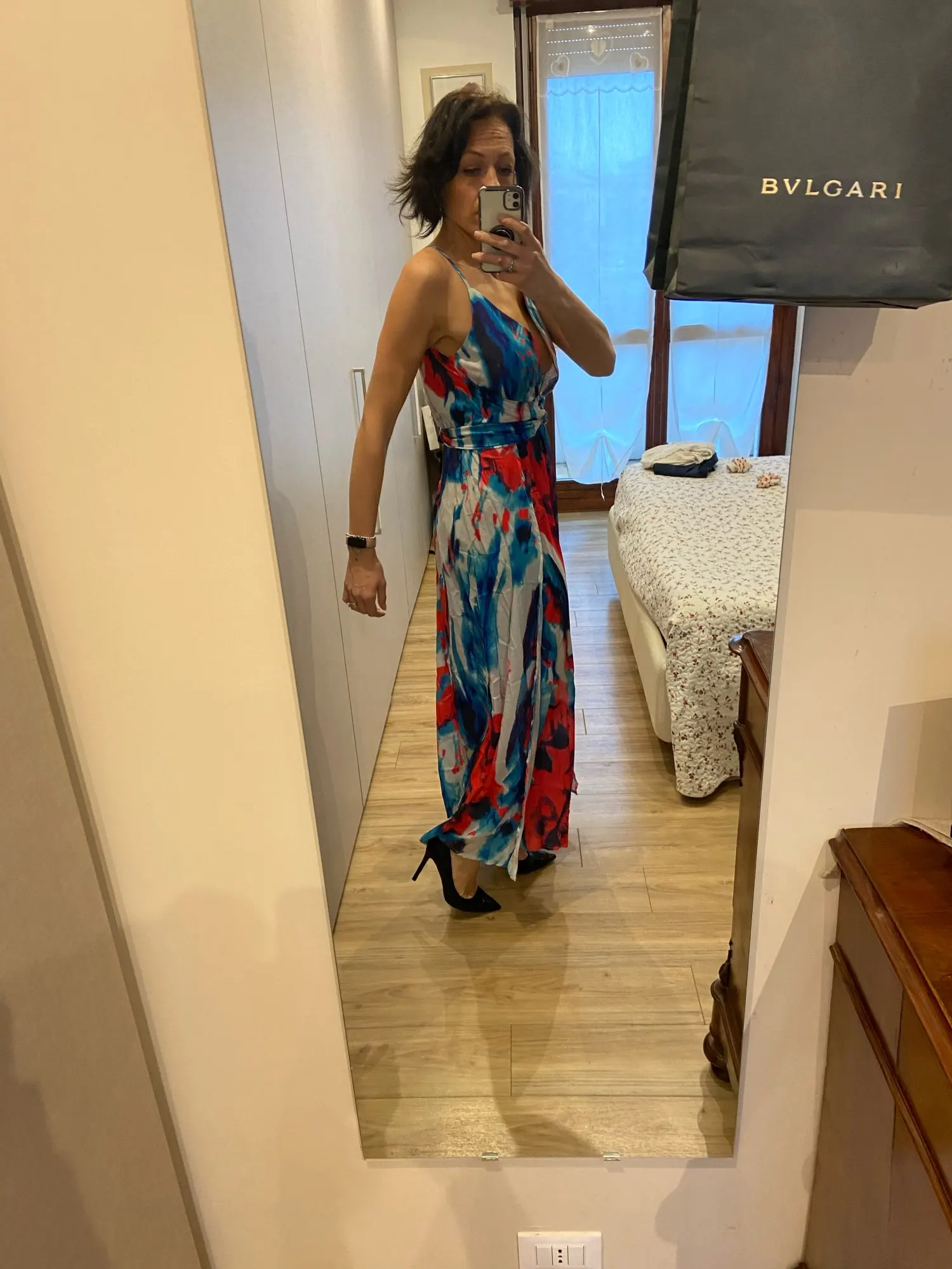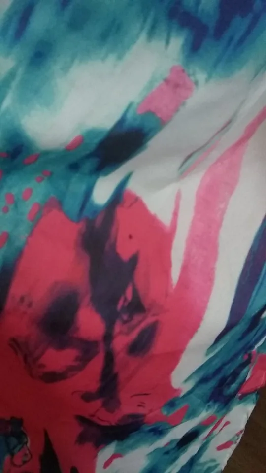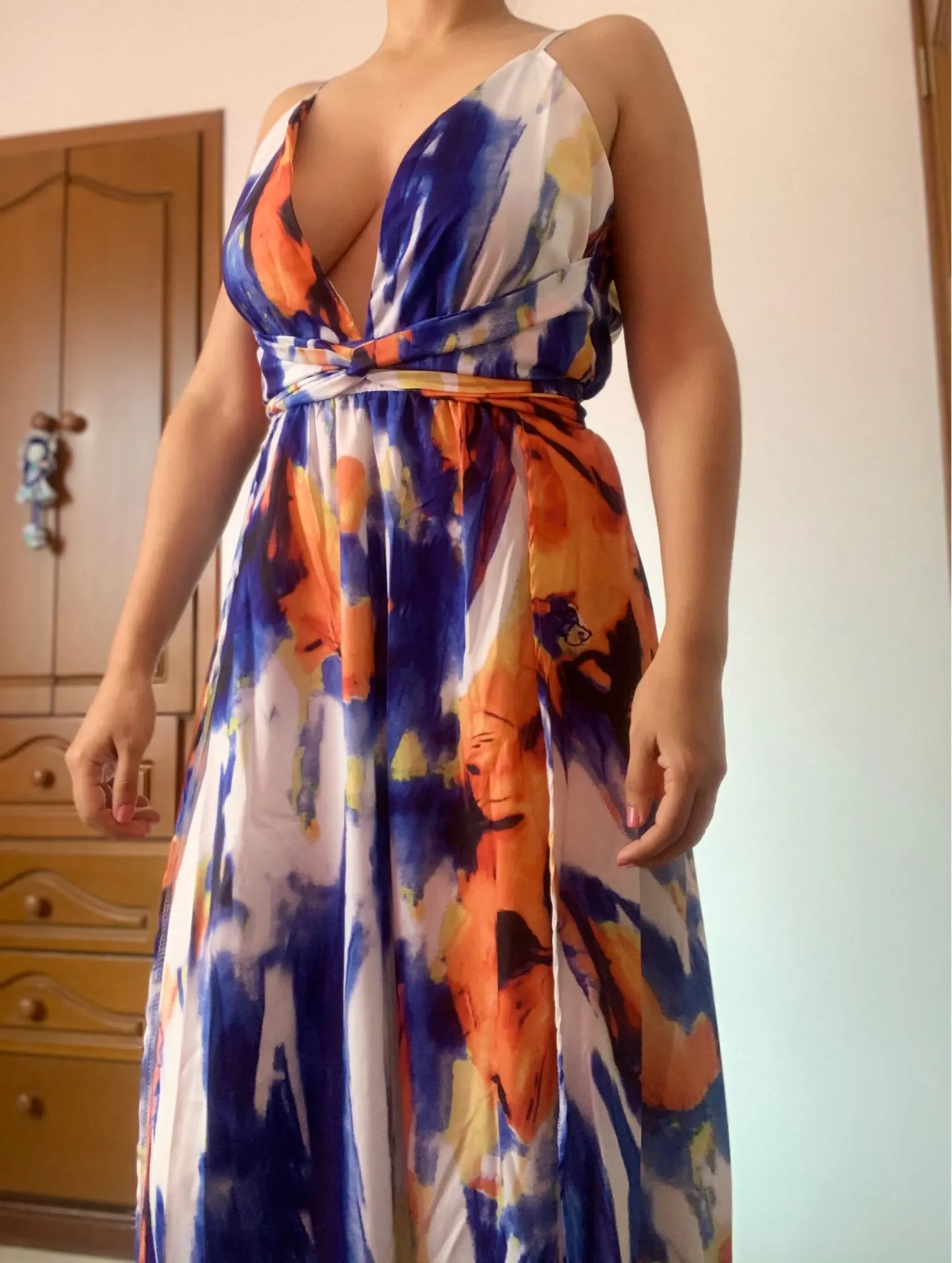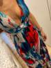 I ordered a tall M and measured 1,70 cm and weight 63kg. The print is equal to the photo, the fabric is fresh and the length for me is perfect. A little open the cleavage but it can be fixed.