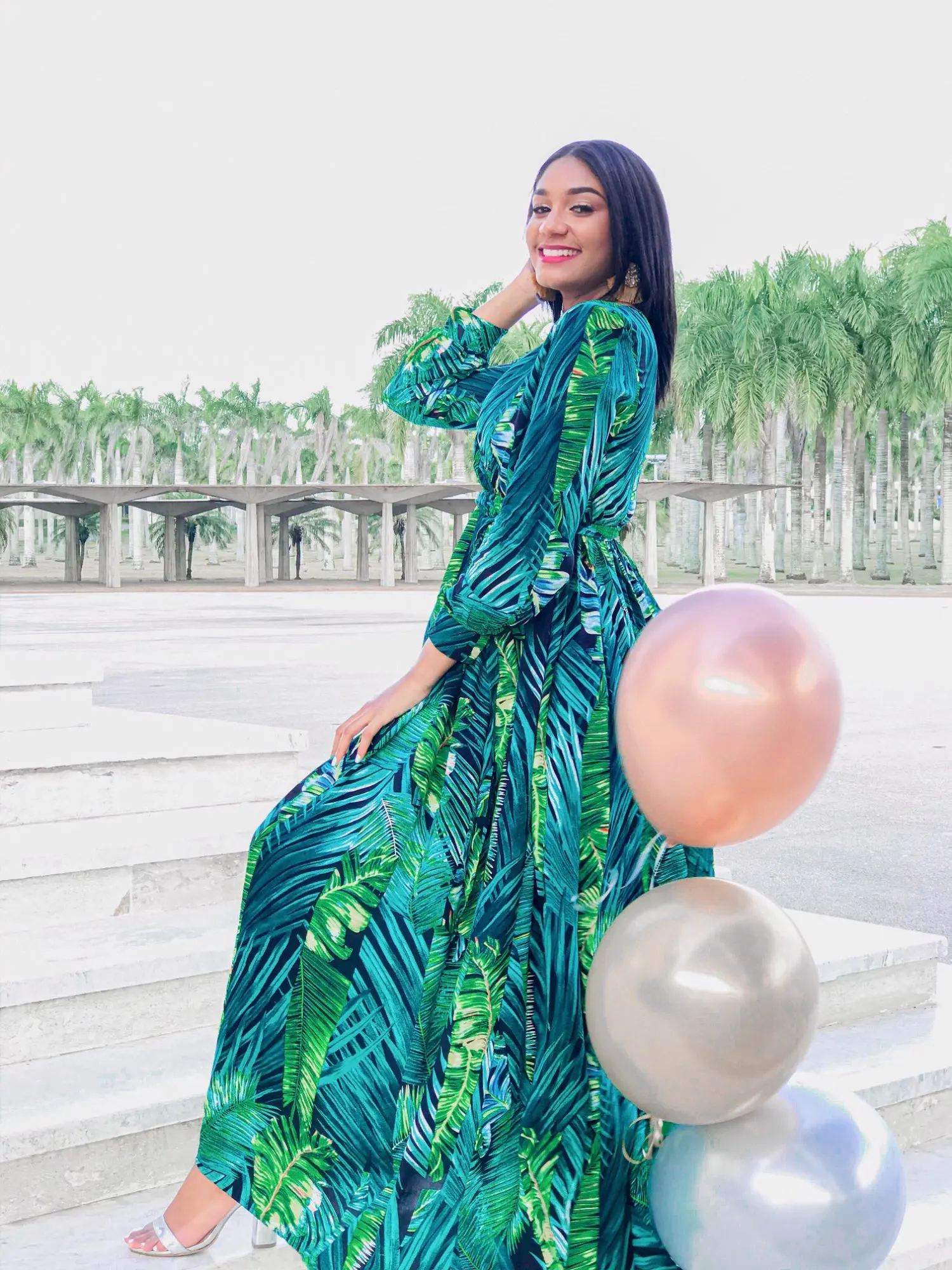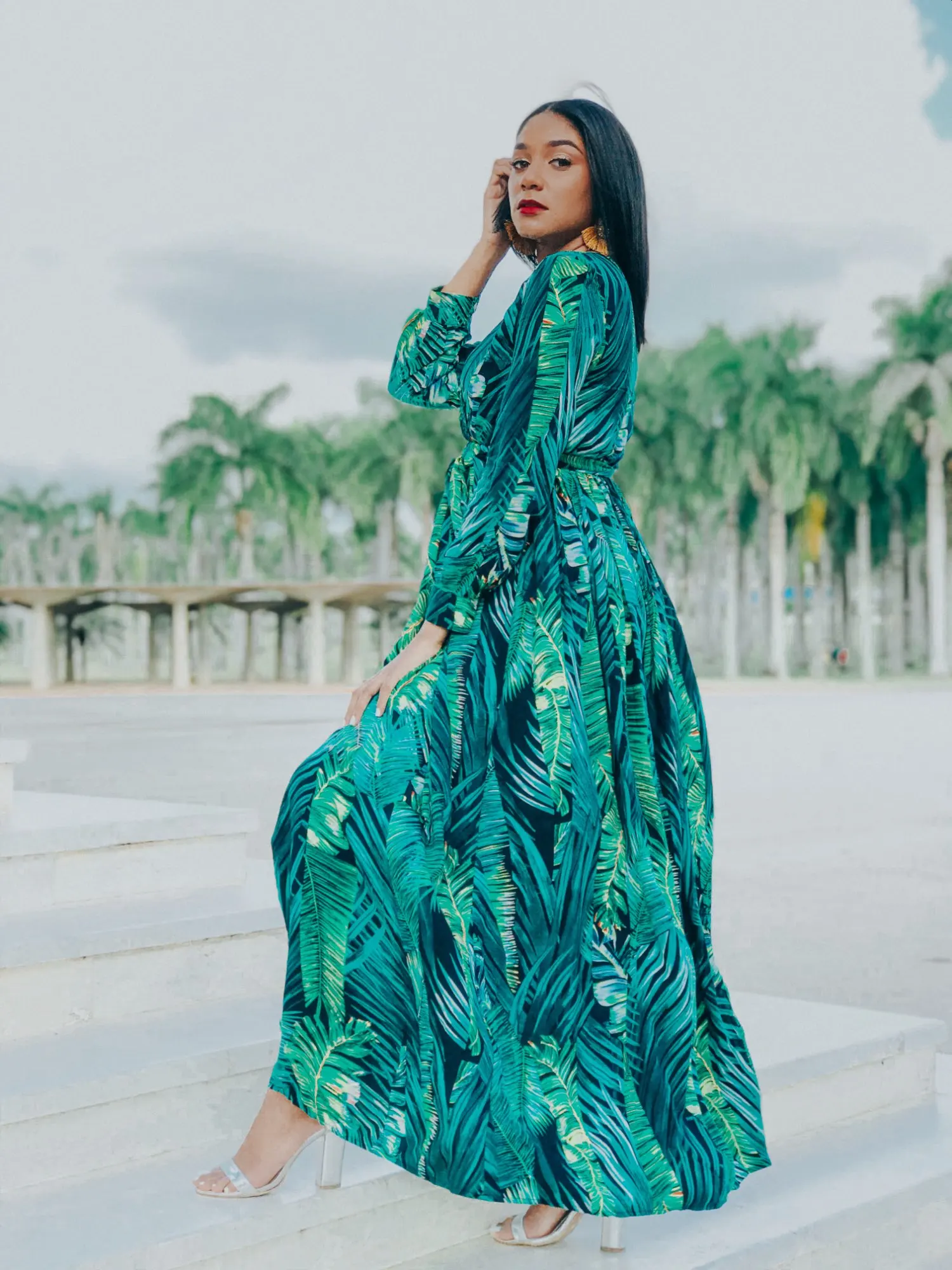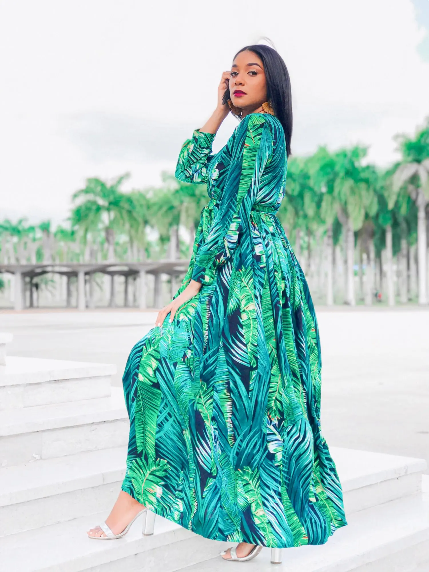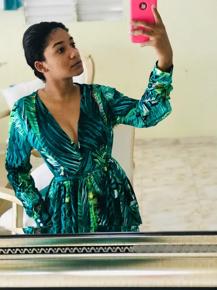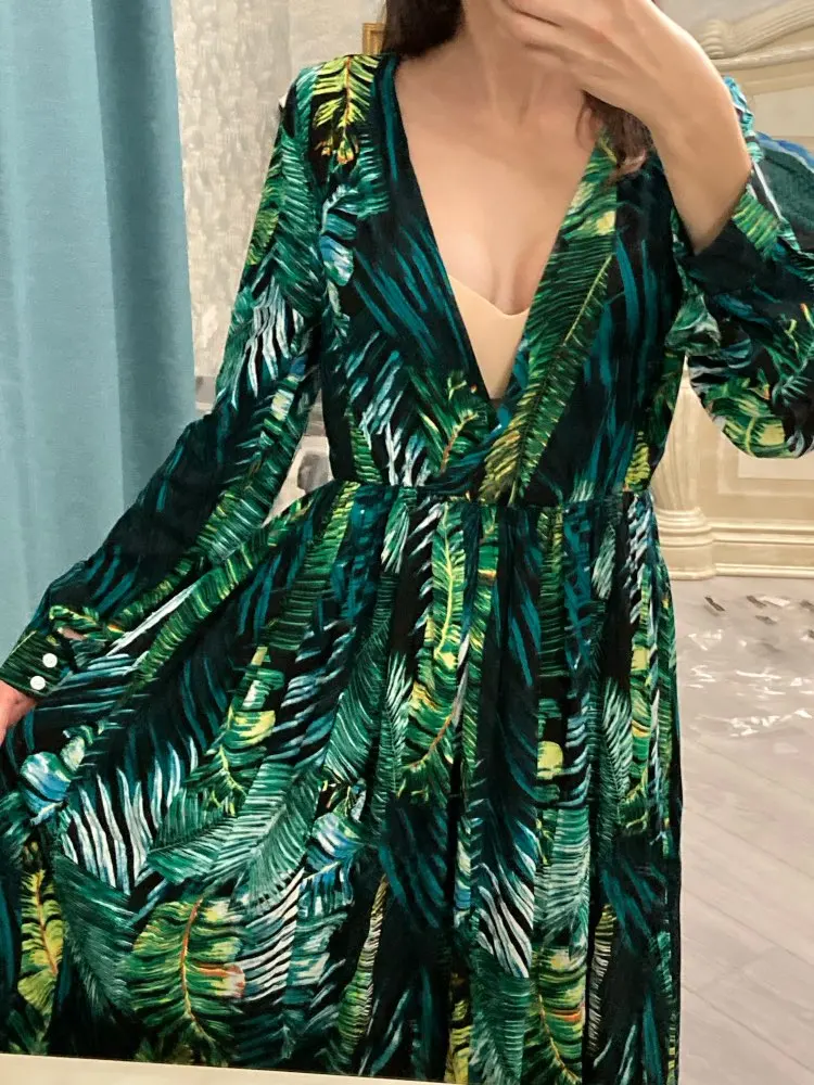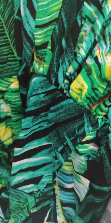piękna.. wzięłam rozmiar XXL na 106 w biuście i musiałaby być większa ... na szczęście pasek jest długi i mogę podszyć nim dekolt. długość na 170 cm wzrostu jest idealna. piękne soczyste odcienie zieleni, materiał lejący się i jest go naprawdę dużo. daję 100/10