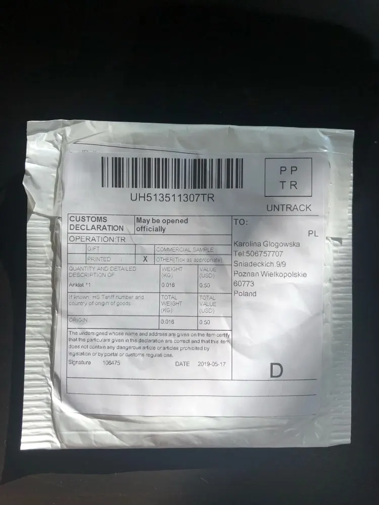 Beautiful anklet, exactly like the picture show. I am happy with it