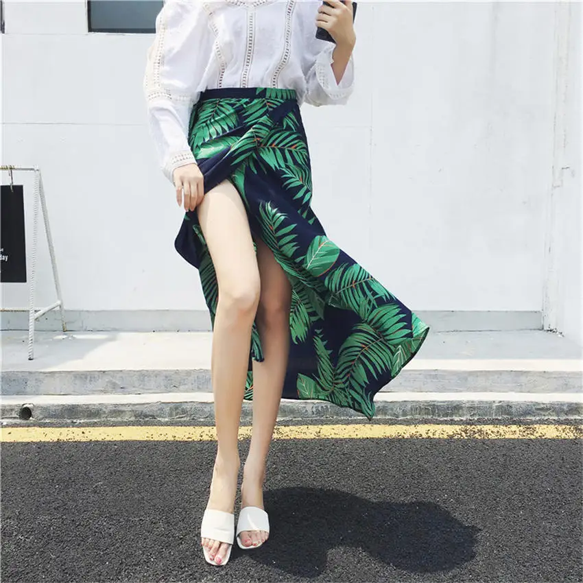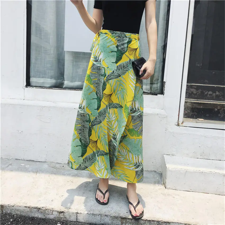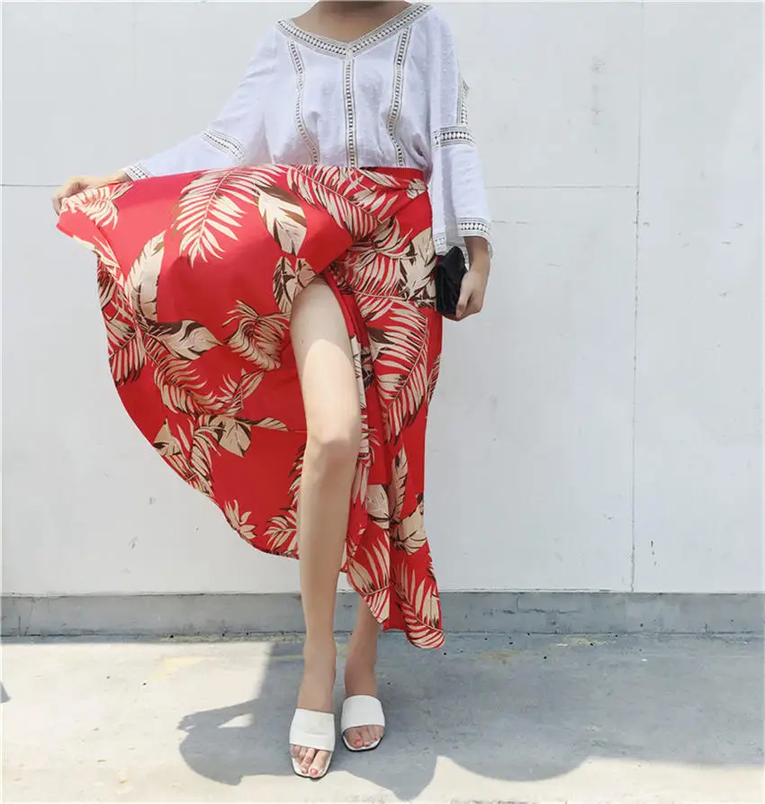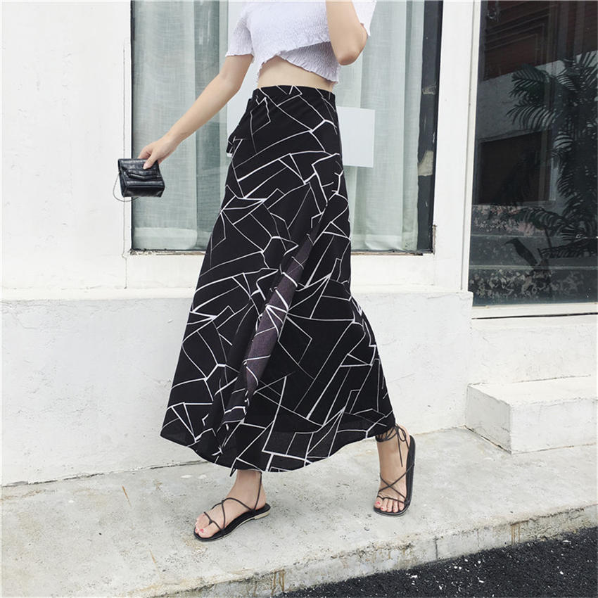 FREE SHIPPING Boho skirt 2019 Summer Vintage Black Chiffon Floral Print Beachwear Sundress JKP2947