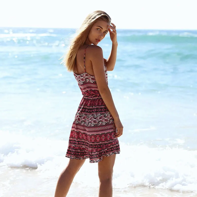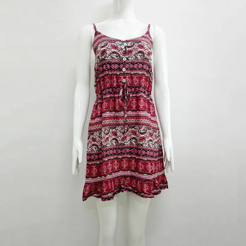 FREE SHIPPING Boho Summer Slip Mini Dress Floral Print Strappy Halter Vestidos Button Down Empire Backless Beach Dress Bohemian Dress Mujer JKP1507