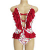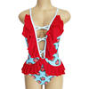 FREE SHIPPING Boho Women’s Bandage Bodysuits Floral Halter Ruffles Deep V-Neck Bodysuit Sleeveless Backless Swimwear Summer Beachwear JKP2719