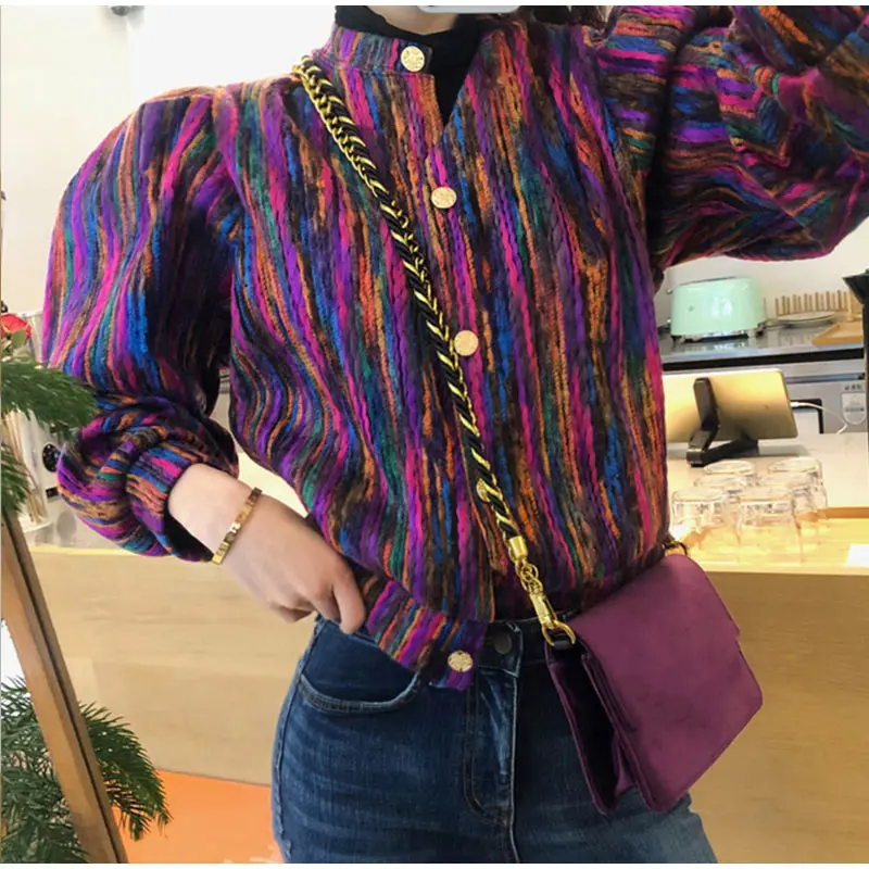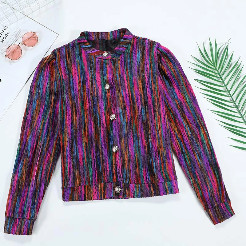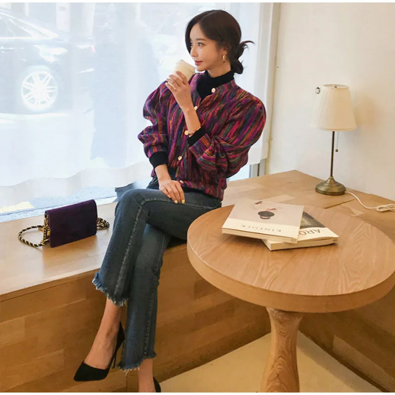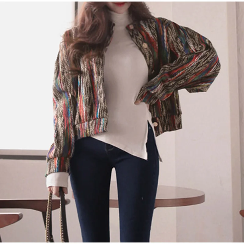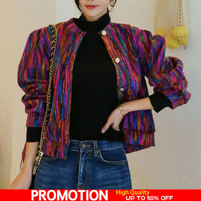 FREE SHIPPING Bomber Short Female Jacket Fall Streak Colorful Printing Long Sleeve Jackets For Women Autumn 2019 Streetwear Women’s Coats JKP2795