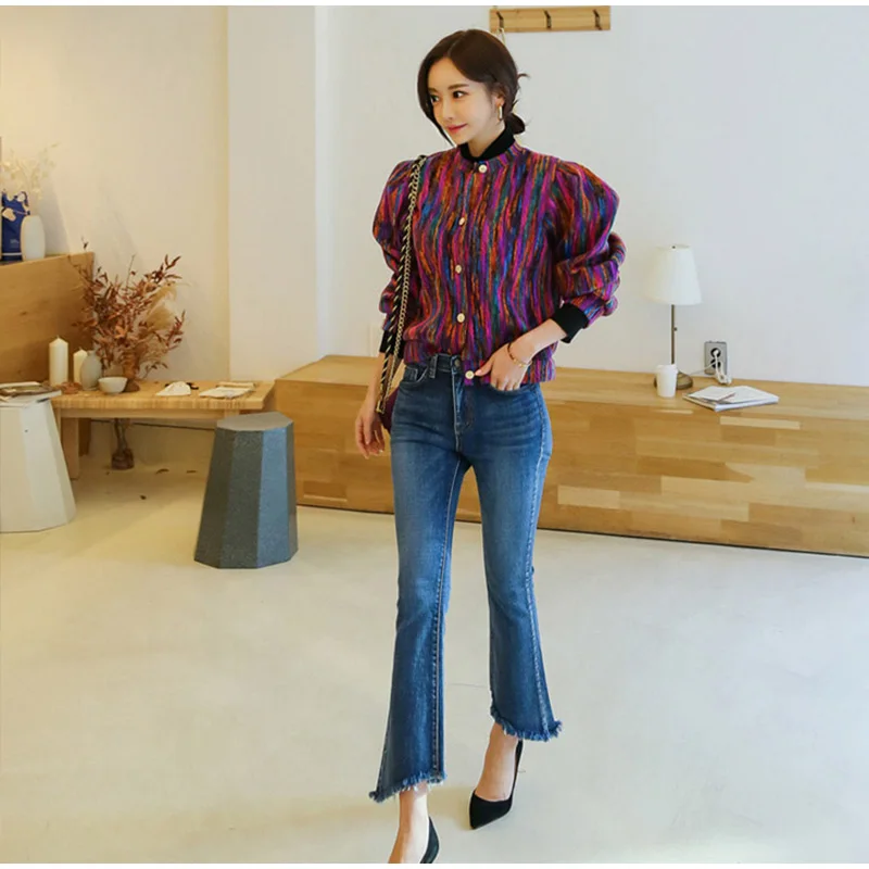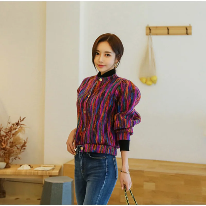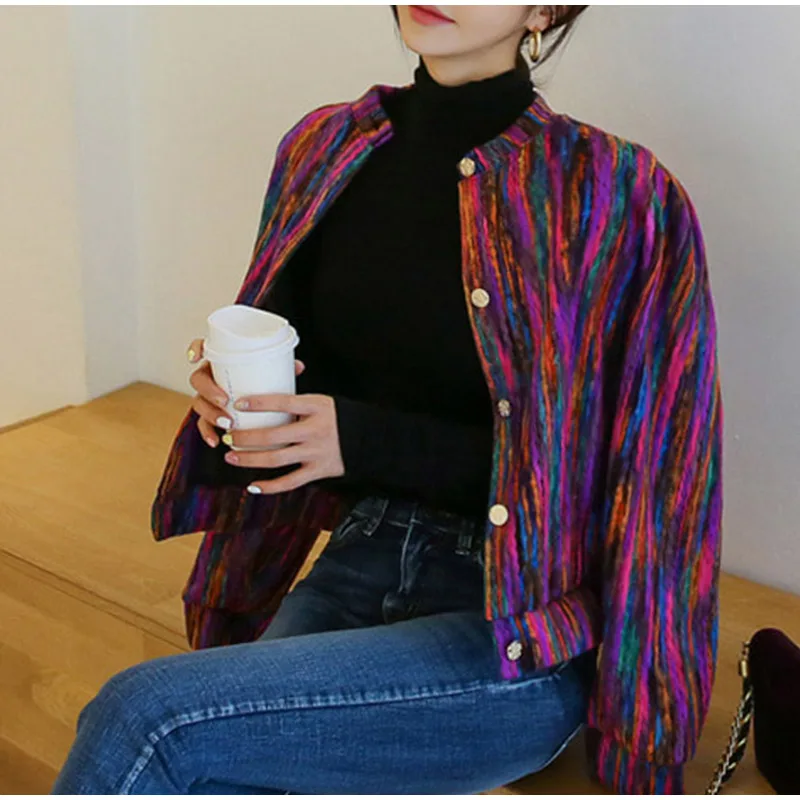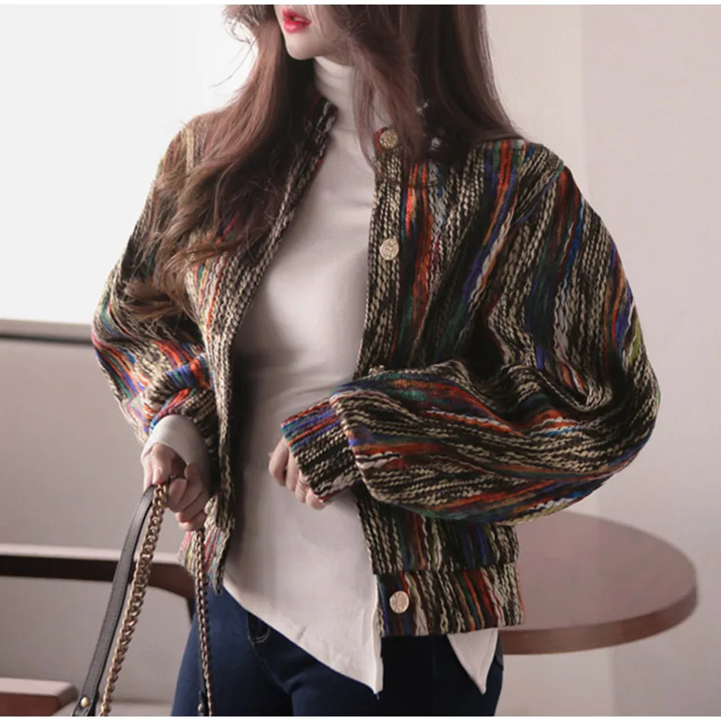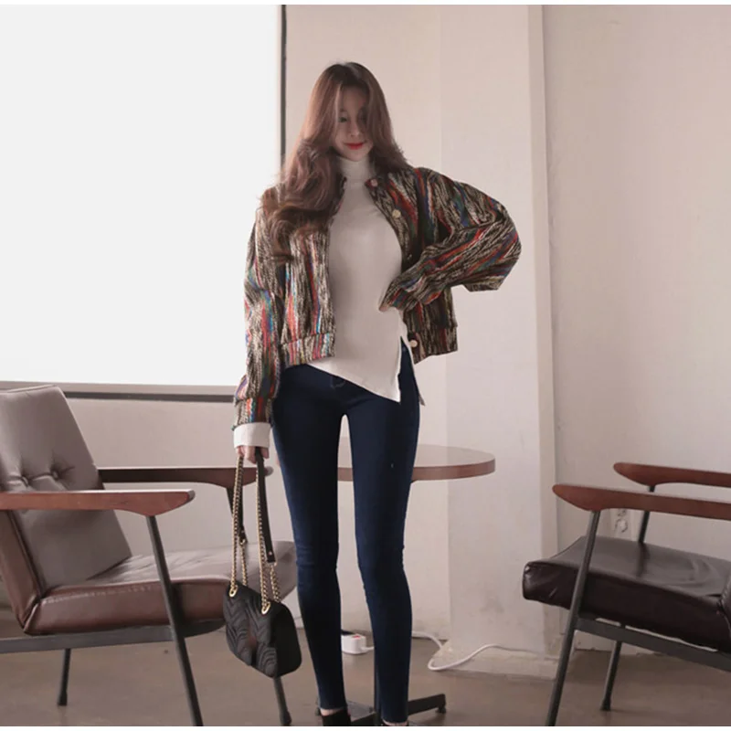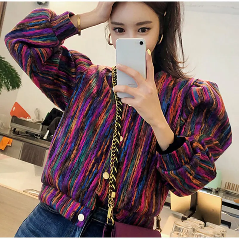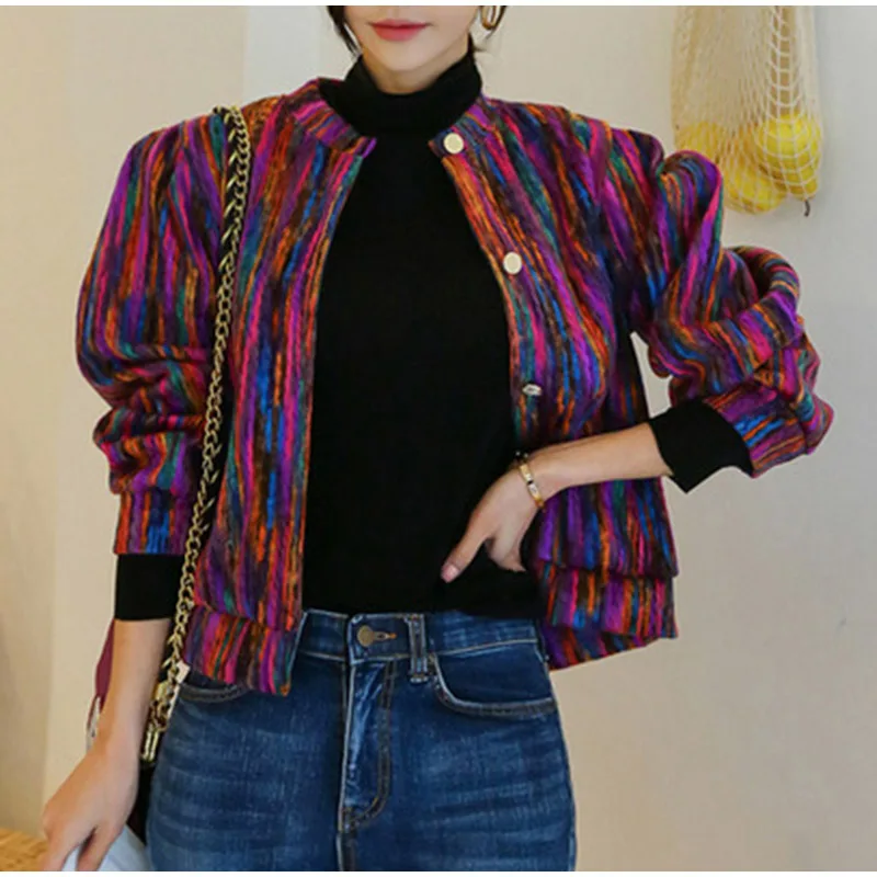 FREE SHIPPING Bomber Short Female Jacket Fall Streak Colorful Printing Long Sleeve Jackets For Women Autumn 2019 Streetwear Women’s Coats JKP2795