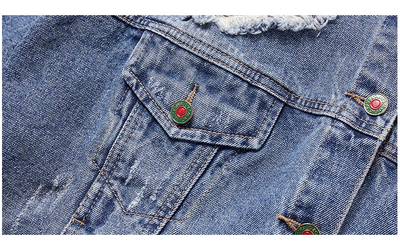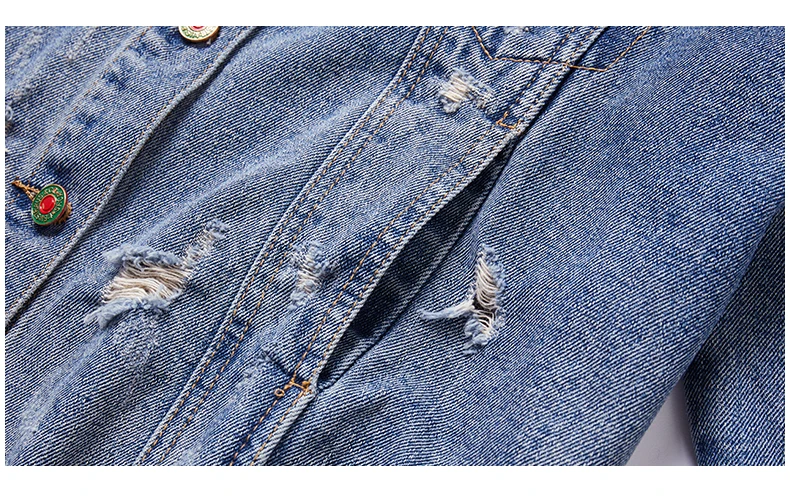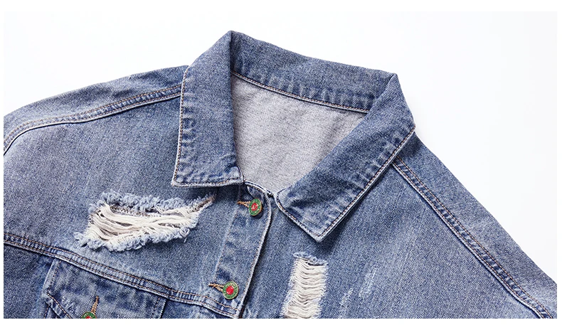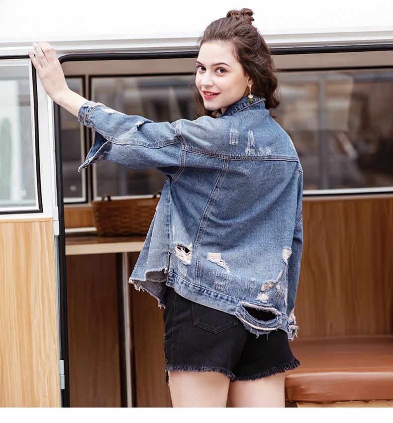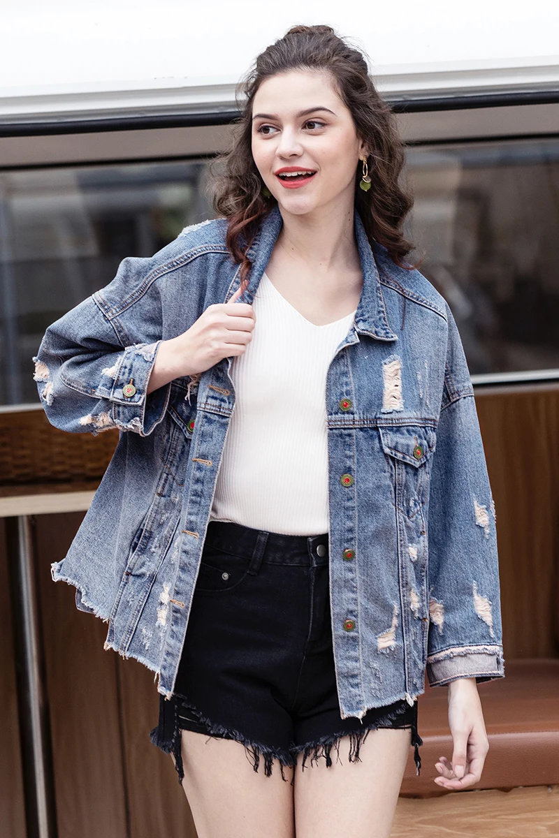 FREE SHIPPING Boyfriend Women Denim Jacket Ripped Blue Jeans Jacket JKP3634