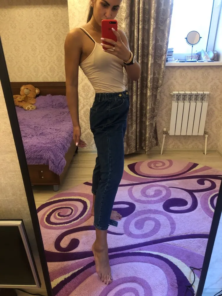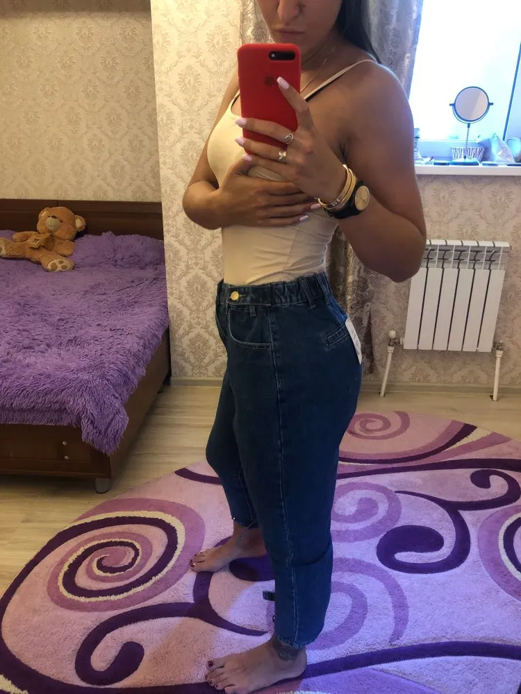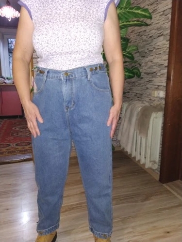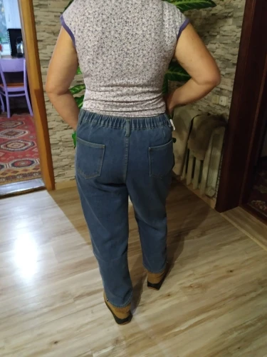Super jeans! Waist size is adjustable by elastic band and rivets. I took it on my mother. I'll take it later, I'll add a tip. Before St. Petersburg there was a bag for almost 2 months. And the track was wrong. By name, the order was searched.