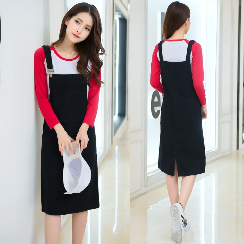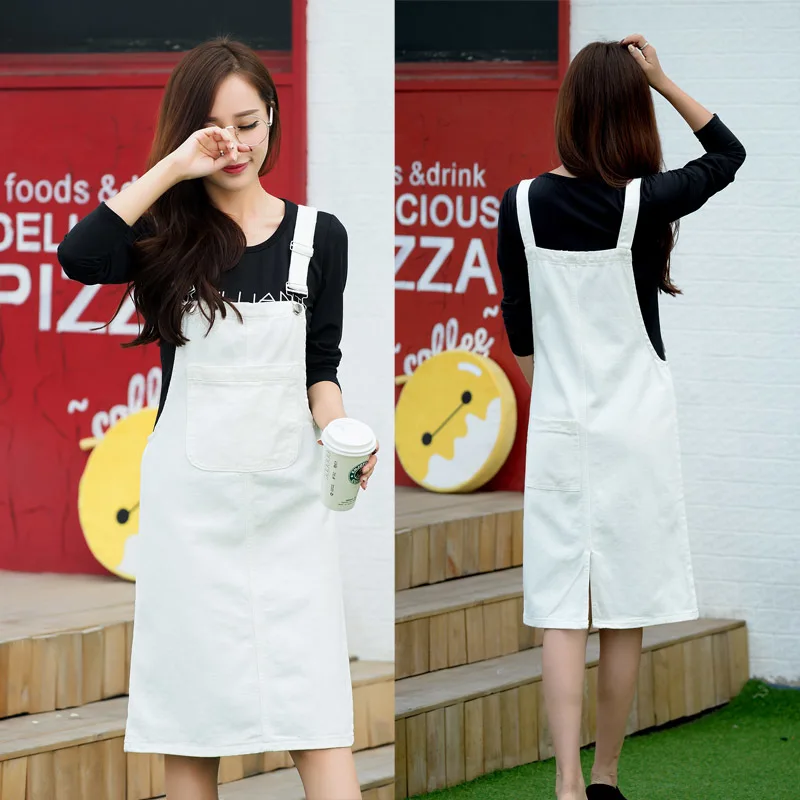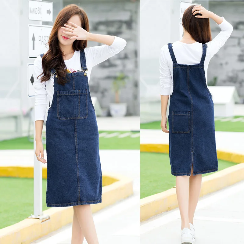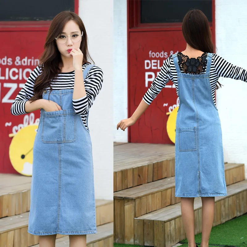 New 2017 Spring Summer Women Suspender Dress Preppy Style Pocket Dress Lady Knee-Length Sleeveless Denim Dress Vestidos E394
