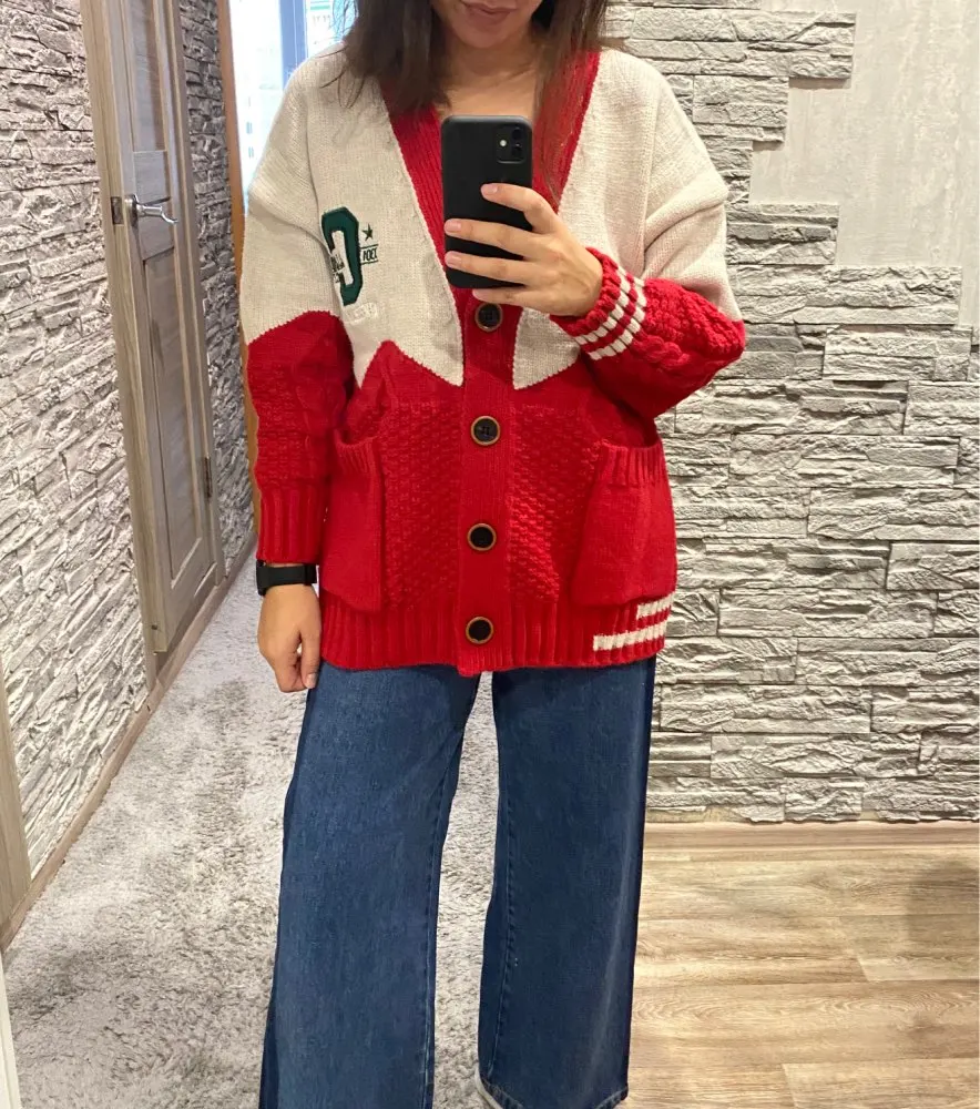 Кардиган очень понравился. Было много ниток, что нужно было обрезать. Вышивка в целом качественная. Мне показалось, что в составе присутствует шерсть, процентов 30. Тем не менее, сам кардиган очень мягкий. На рост 162 см и вес 48 кг сел как oversize. Для высоких людей будут коротки рукава, т к мне длина рукавов подошла идеально. Хороший продавец. Рекомендую. Спасибо!