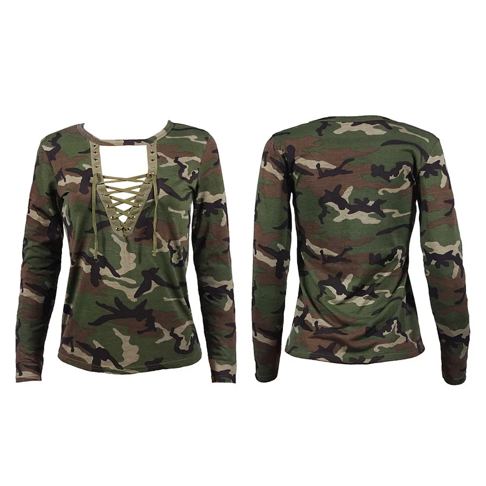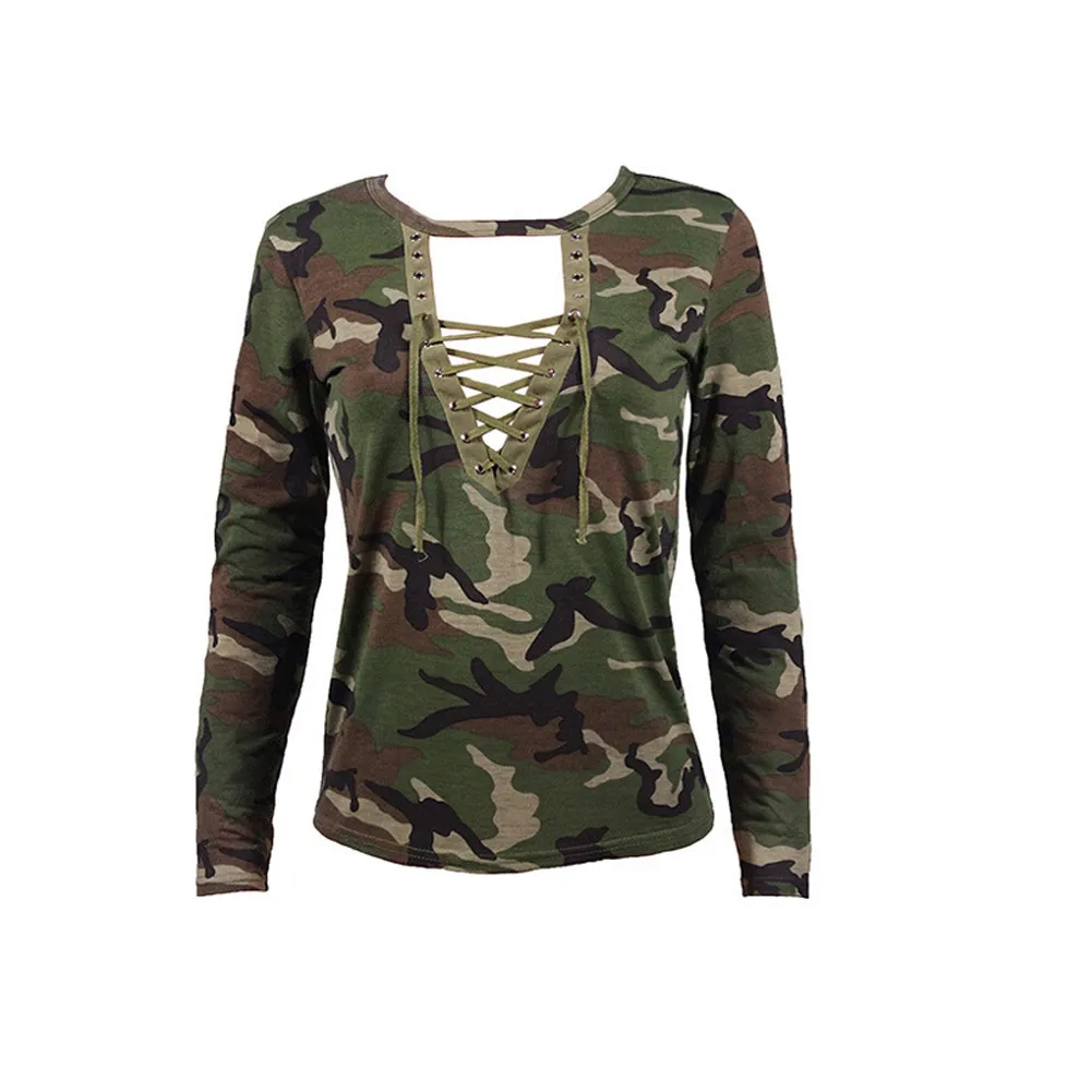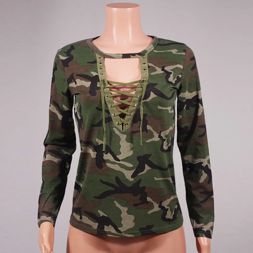 FREE SHIPPING Camouflage V Neck Lace Up Halter Top JKP1342