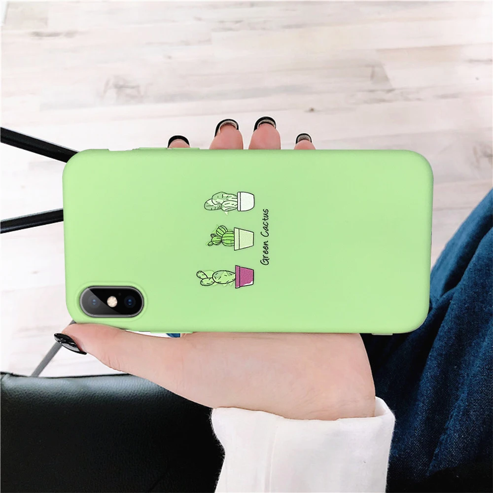 FREE SHIPPING Candy Color Cactus Dinosaur Printing Case For iPhone 11 Pro XS Max X 5 5S SE 6s 6 S 7 8 Plus