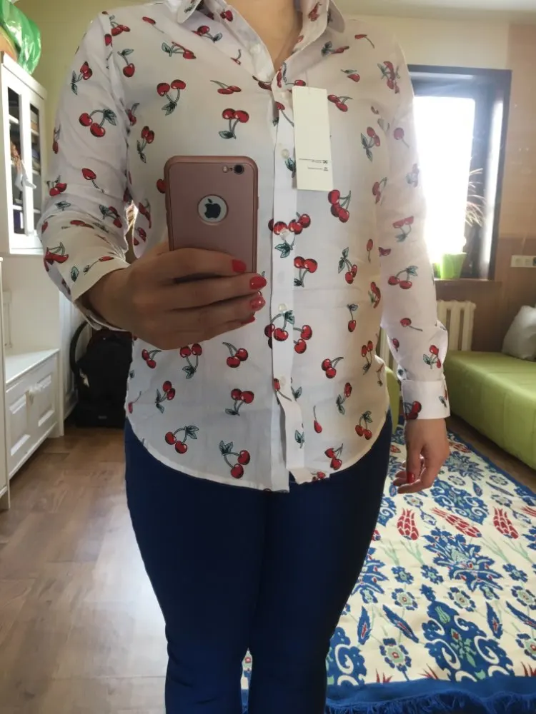 Shirt cool! Delivery is fast, packed in postal package. Sewn neatly, the lines are even, the threads do not stick out, there is no smell, the fabric is cotton, moderately transparent. Well sat on og 101 and from 80 cm, sleeve with an increase of 162 cm of normal length. Thank you store!